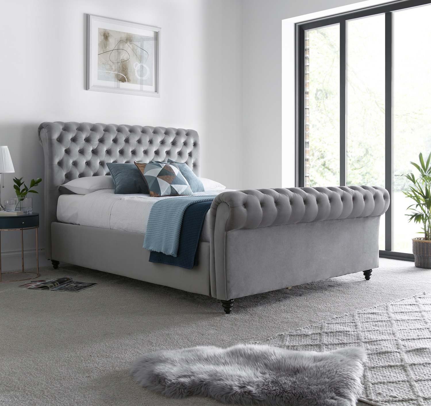 Osborne Grey Velvet Chesterfield Ottoman Bed King Size