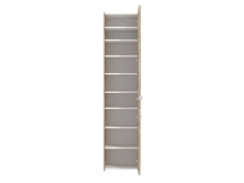 Otley Oak Effect Tall Slim Shoe Cabinet Cupboard | Mirrored Hallway Storage – 8 Shelves