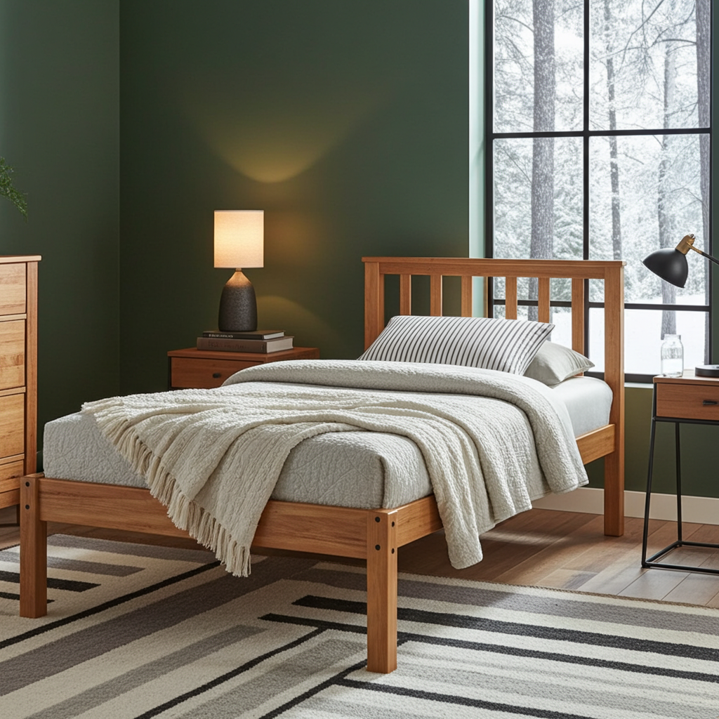 Otto Single Wooden Bed – Antique Pine | Solid Wood Single Bed Frame