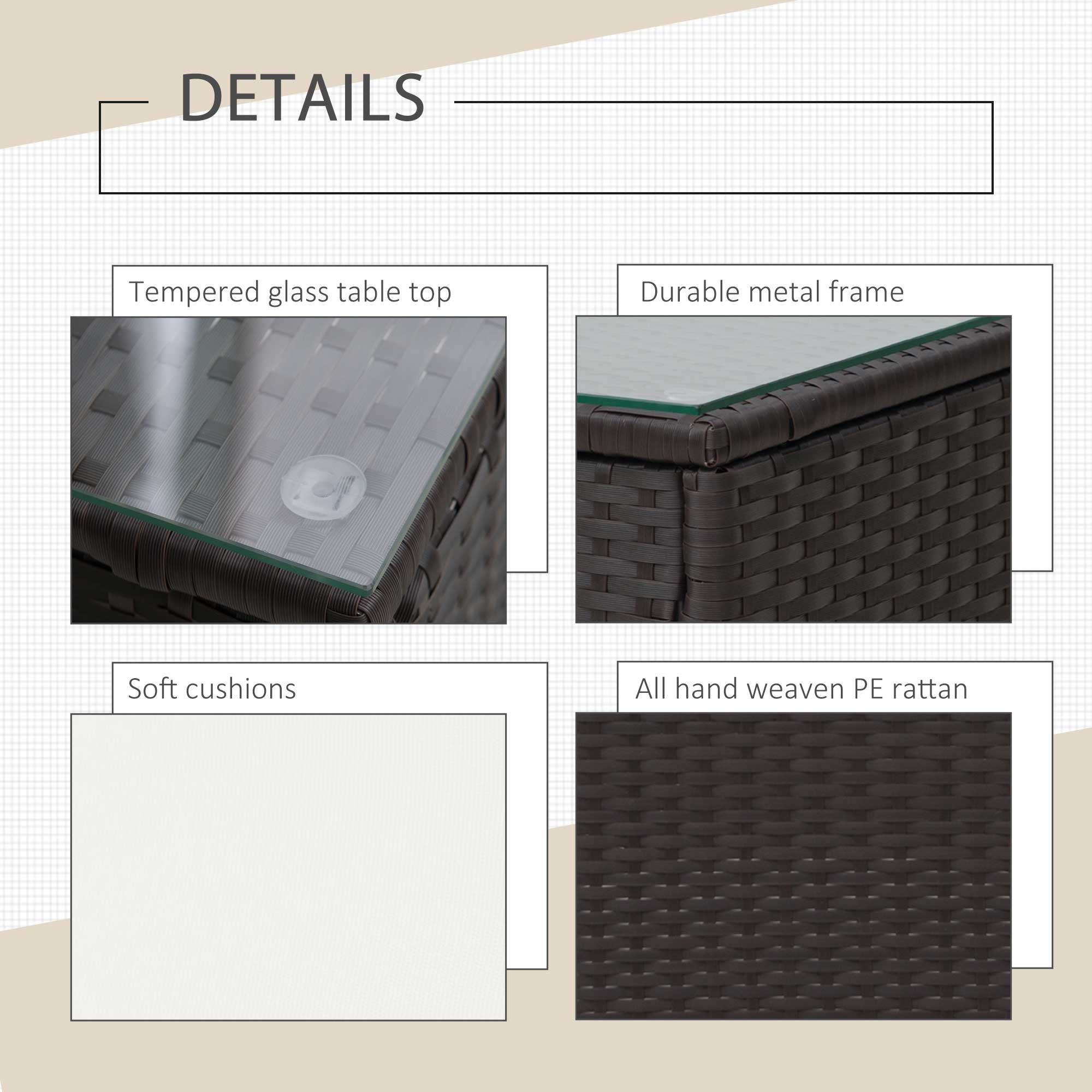 Details about Outsunny 2-Seater Rattan Bistro Set Garden Furniture Sofa Chair Table Wicker Weave Outdoor Patio Conservatory Set Cover Steel Frame, Brown