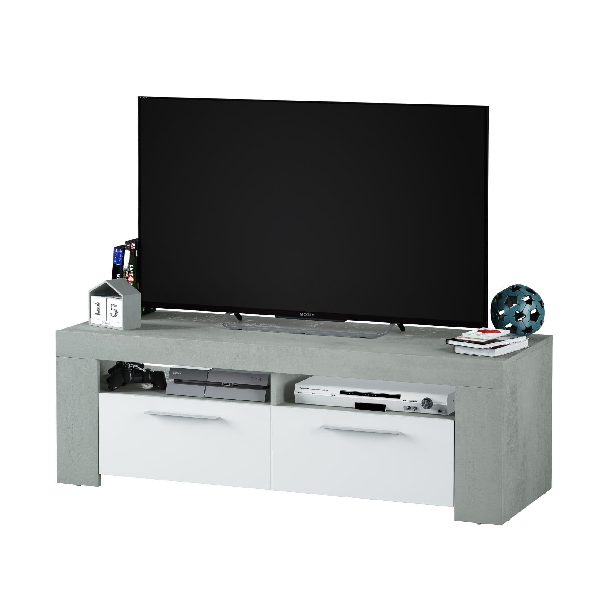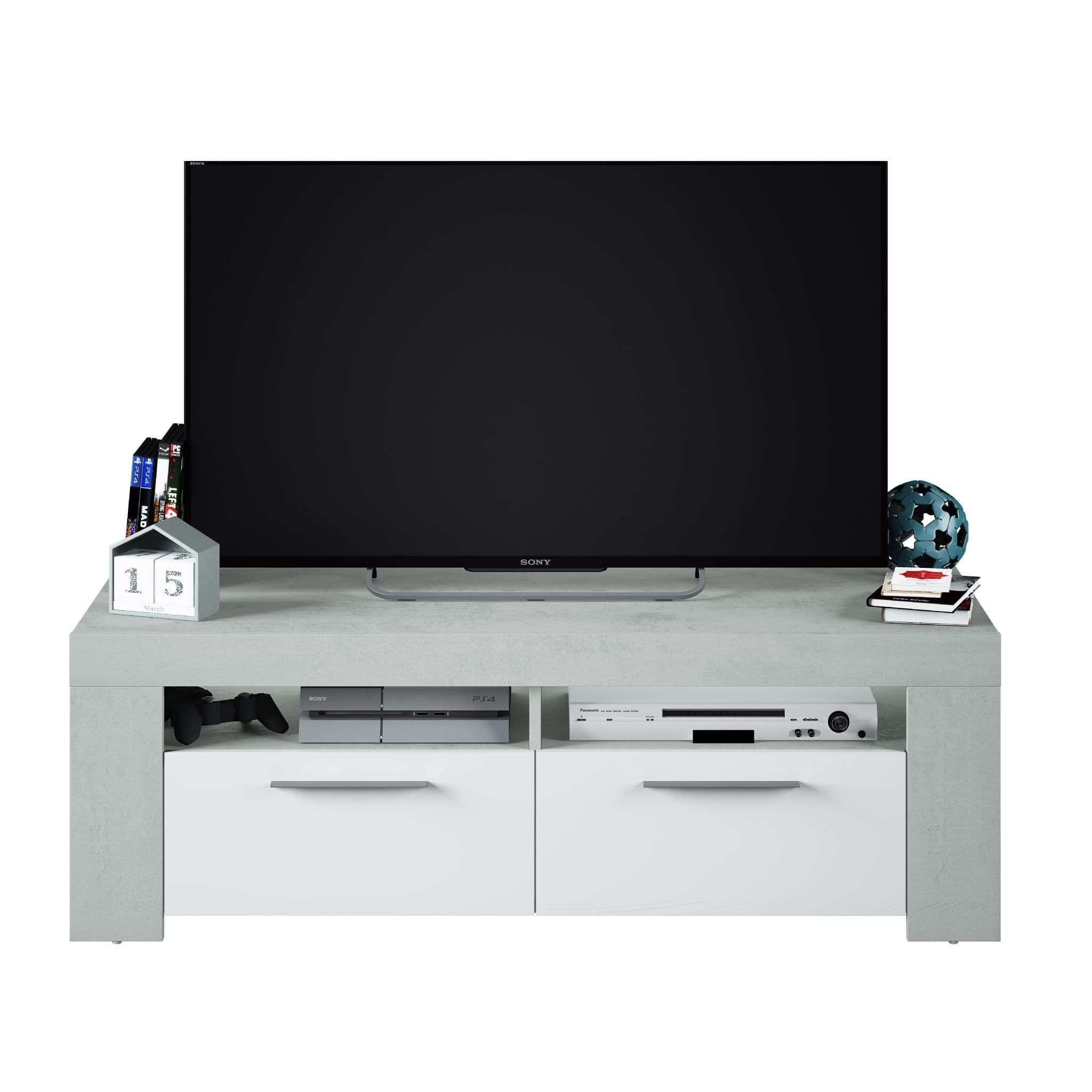 Details about Ramsey White Gloss and Grey TV Cabinet Entertainment Unit