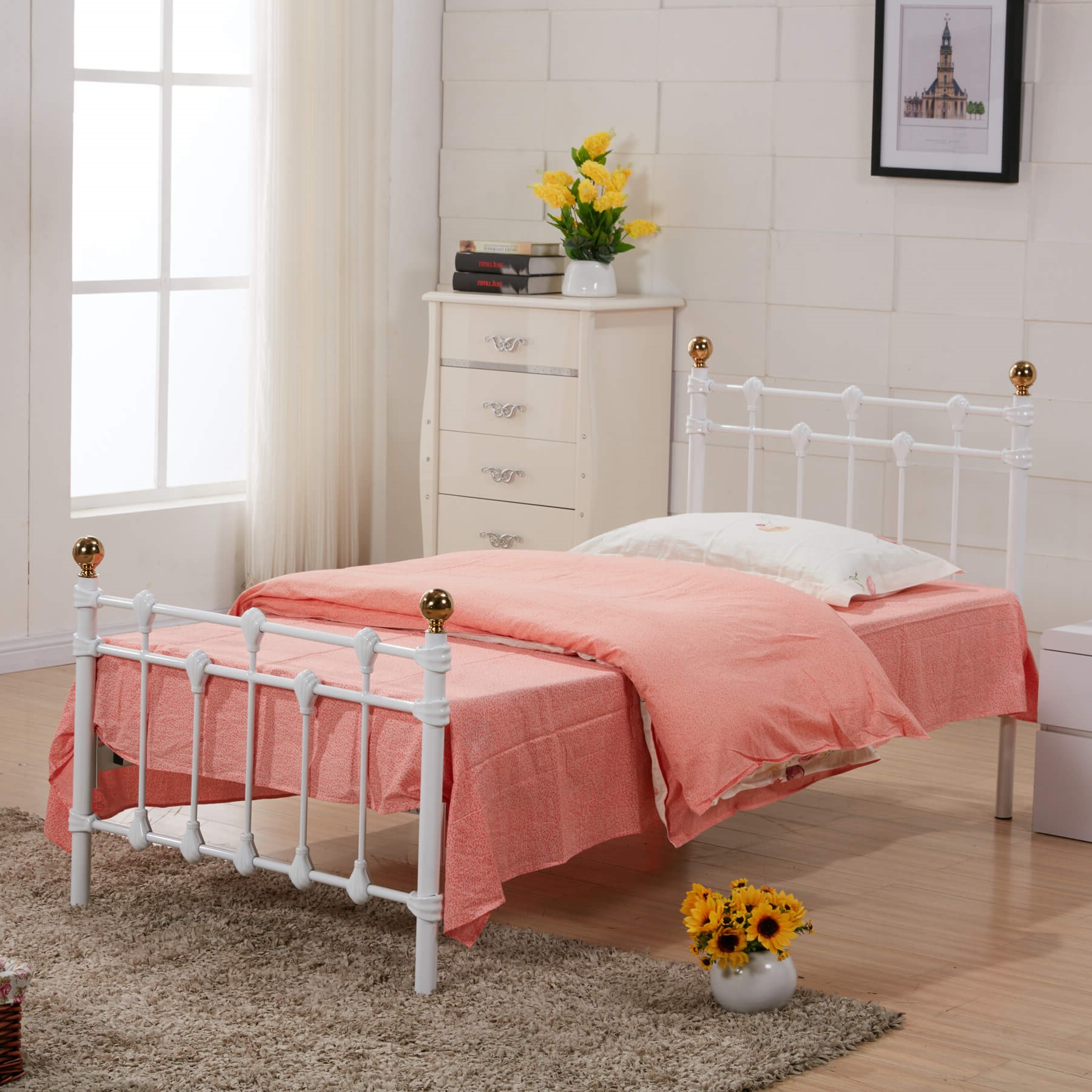Rochelle Single Bed in white metal bed frame with polished gold caps