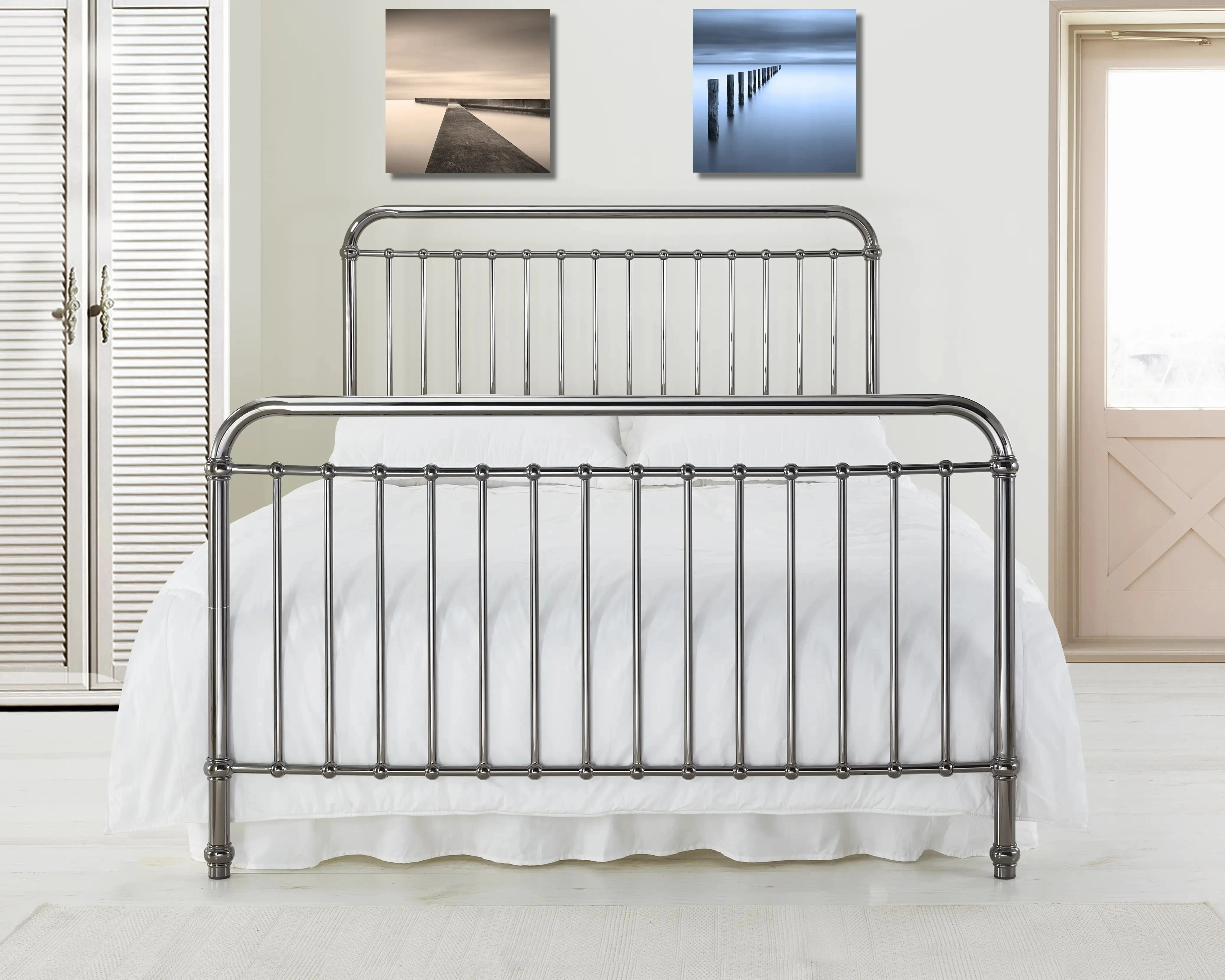 The Rose is the perfect bed frame to uplift any bedroom décor. This elegant but modern bed is perfect for anyone wanting a centrepiece that makes a real statement. With its polished Nickel finish and modish design you need to look no further than the Rose.