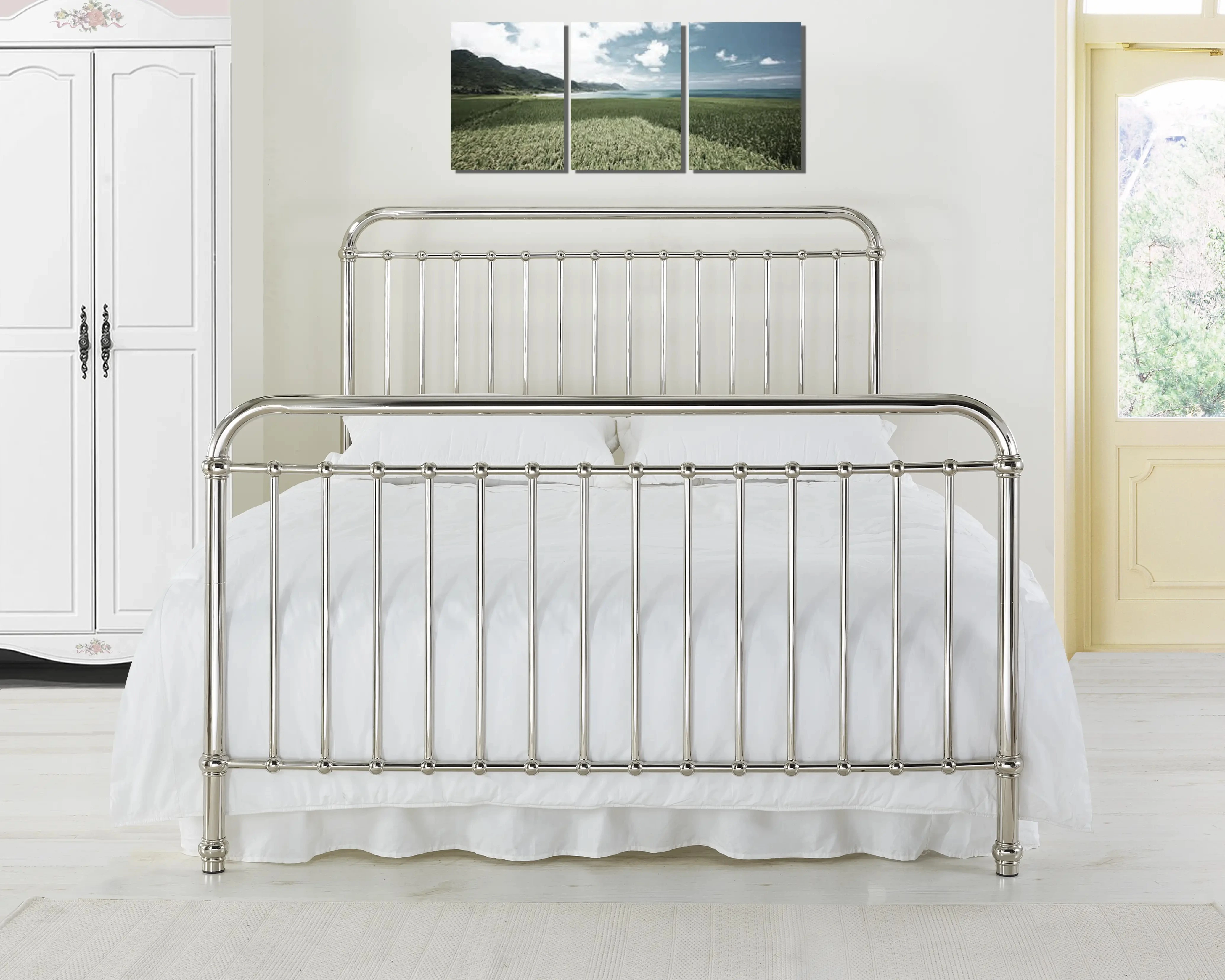 The Rose is the perfect bed frame to uplift any bedroom décor. This elegant but modern bed is perfect for anyone wanting a centrepiece that makes a real statement. With its polished Nickel finish and modish design you need to look no further than the Rose.