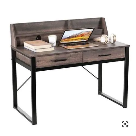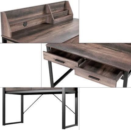 Discover the Rushden Dark Walnut Effect Writing Study Desk, crafted for productivity and style. Featuring a sturdy metal frame, it includes two drawers for storage convenience. Its reversible legs offer flexible placement options, while the included hutch enhances organizational efficiency. Ideal for both study and work environments, combining functionality with contemporary design.