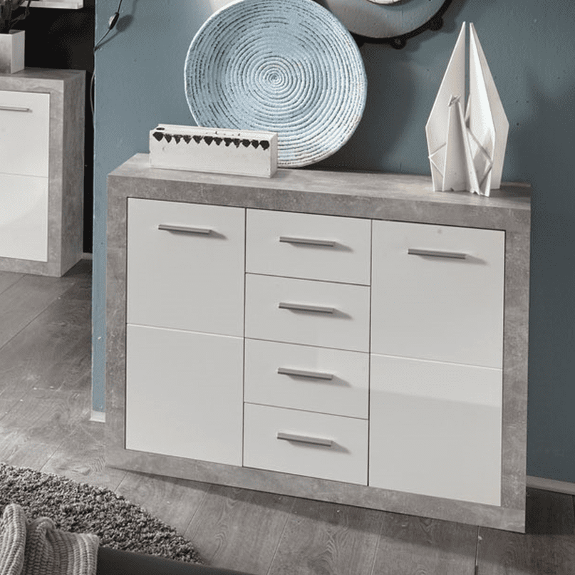 Sefron Sideboard Cabinet – 2 Doors & 4 Drawers in Grey and White Gloss – 117 cm Wide