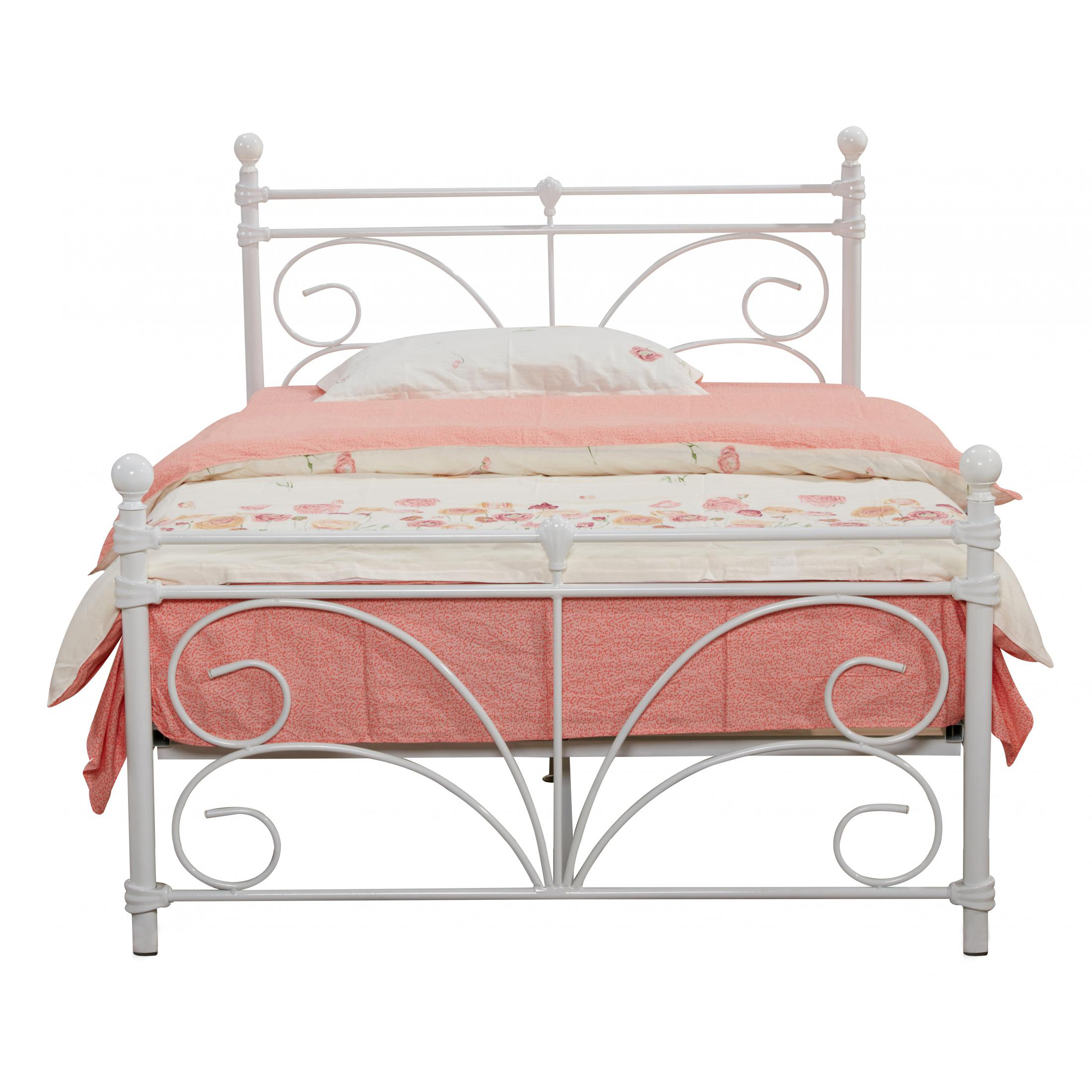 White Metal Bed Frame, Bentwood Slats
