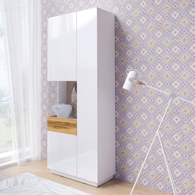 Details about Silke 12 Tall Display Cabinet White Gloss & Wotan Oak [Left]