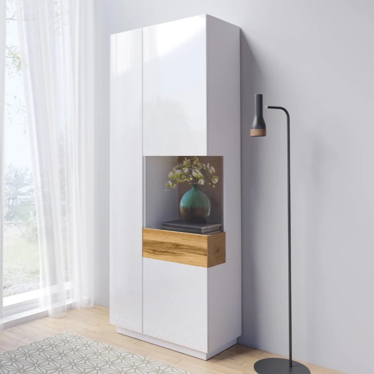 Details about Silke 13 Tall Display Cabinet White Gloss & Wotan Oak [Right]