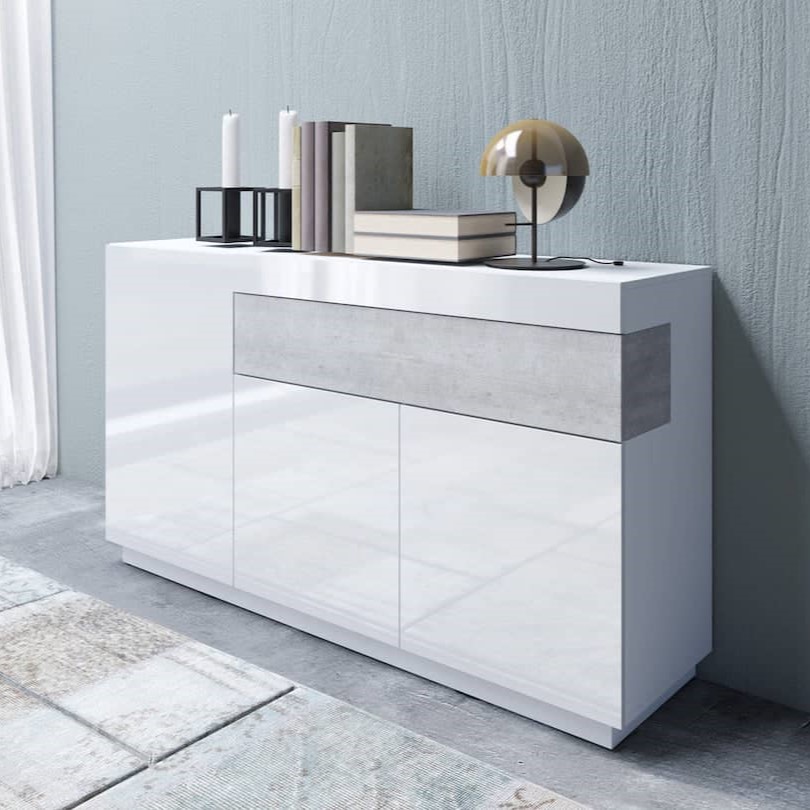 Details about Silke 43 Sideboard Cabinet White Gloss / Concrete Grey