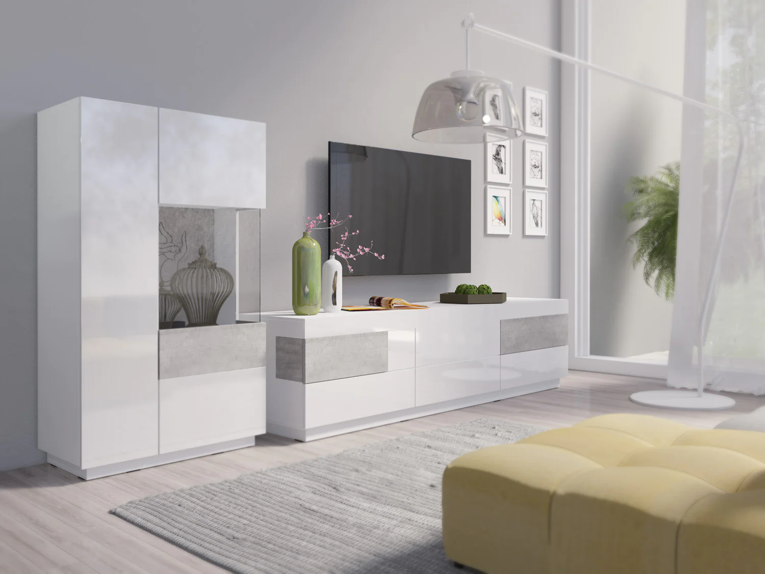 Details about Silke 44 Display Cabinet White Gloss & Concrete Grey [Right]