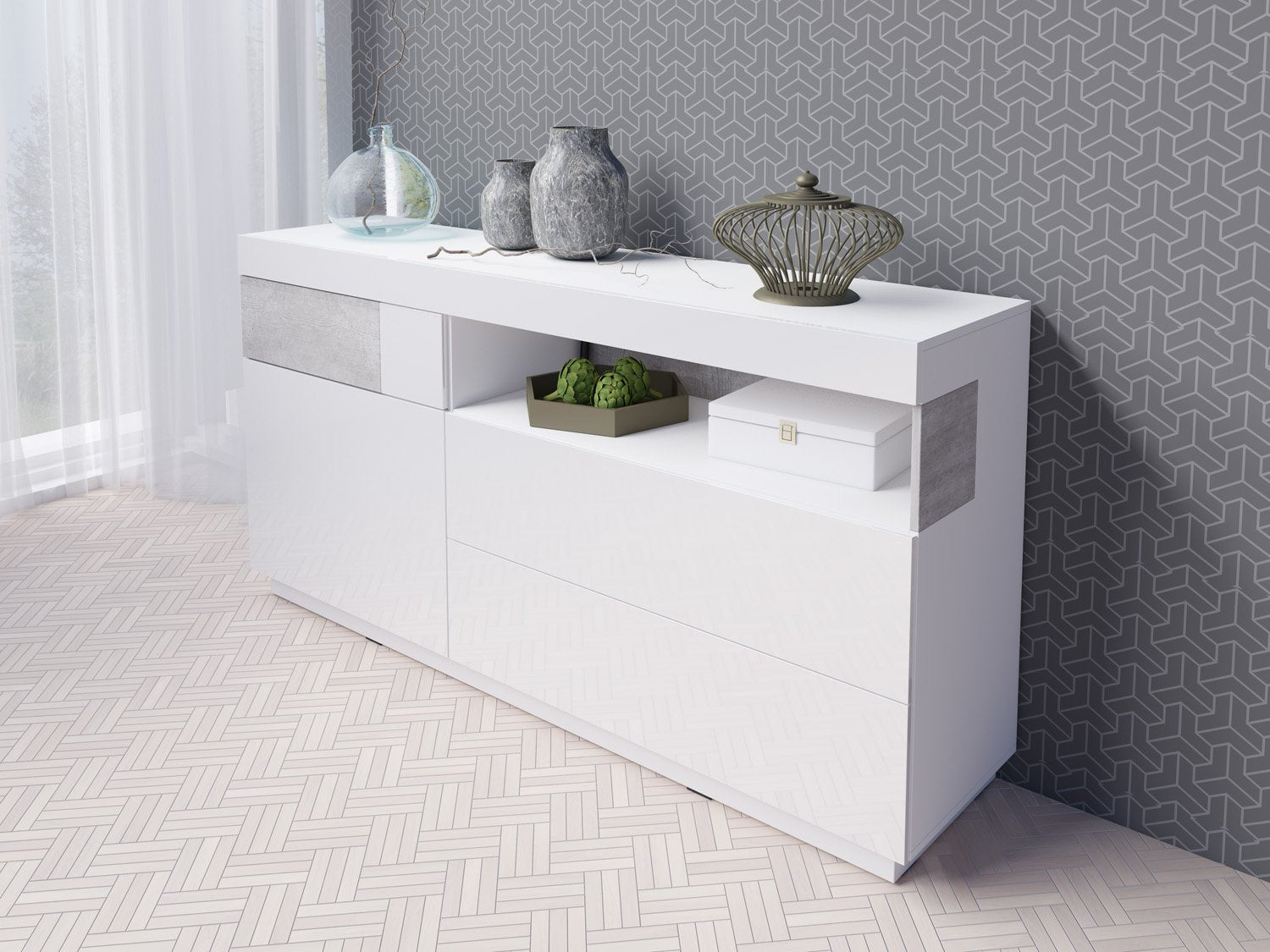 • Front White Gloss & Concrete Grey and White Matt Carcass