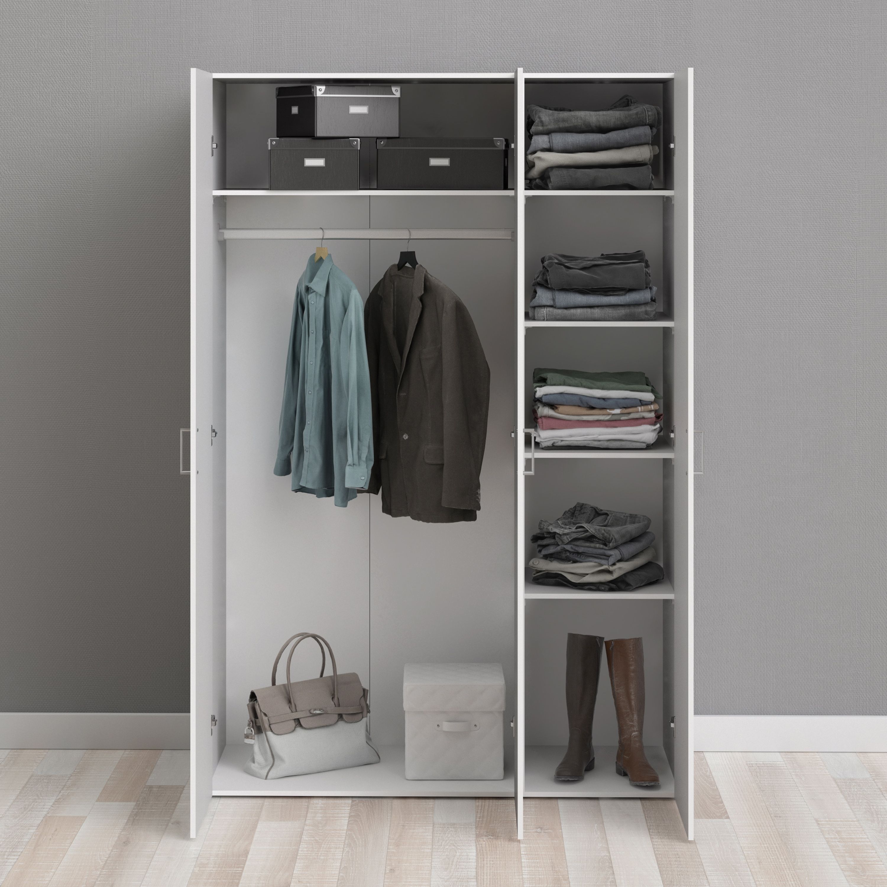 - Five tiered shelves arranged for optimal organisation of clothing and accessories