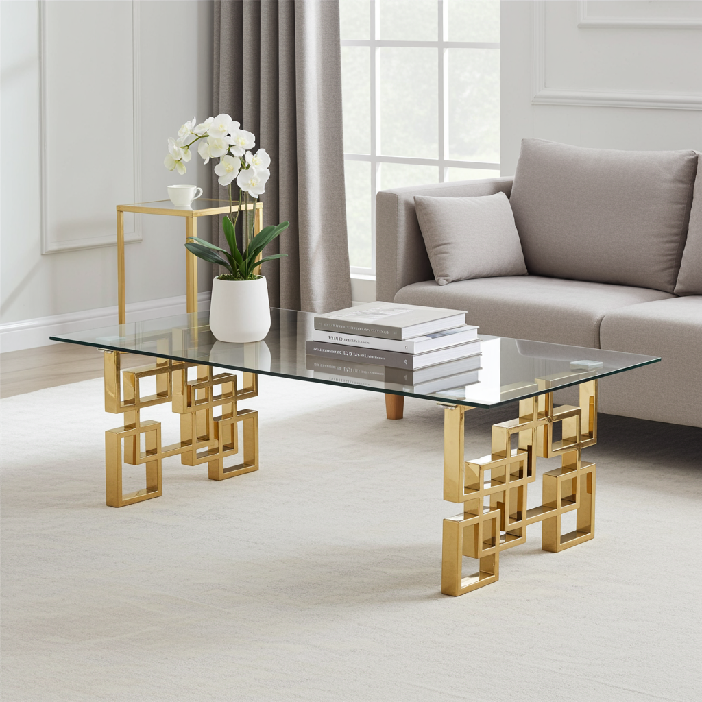 Spectra Coffee Table – Clear Glass Top & Gold Stainless Steel Legs