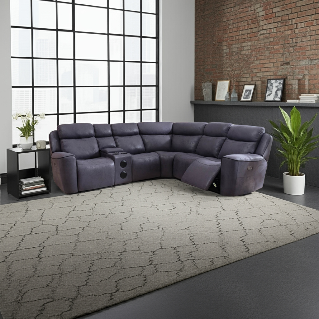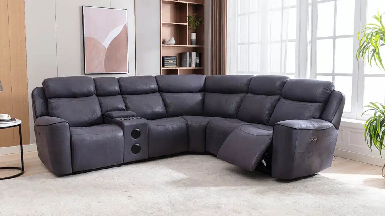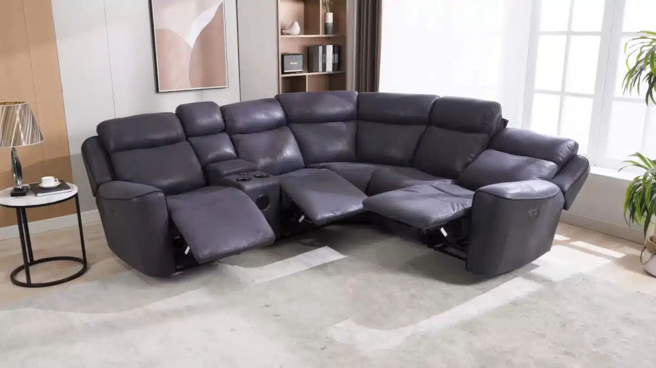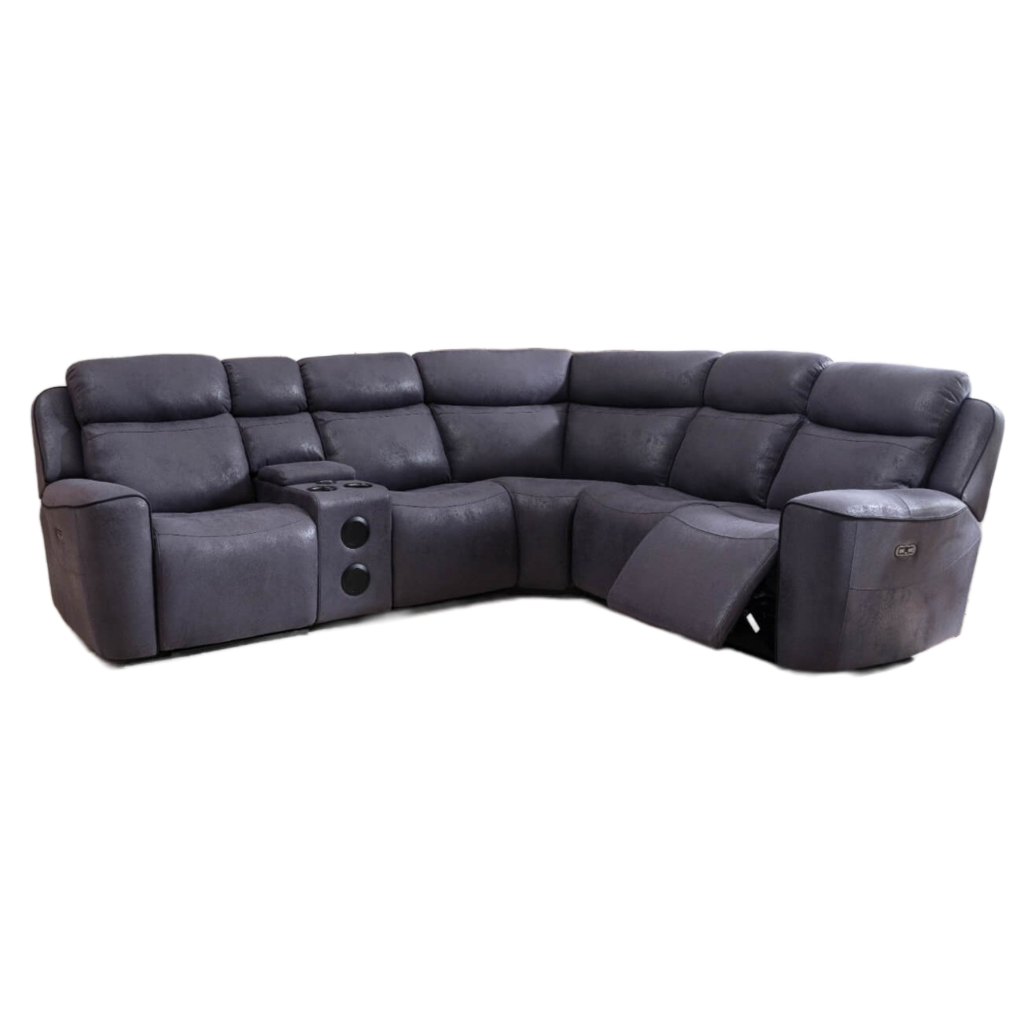 The Techno Corner Sofa with 3 Power Recliners – Grey elevates lounging with its blend of sumptuous styling and innovative features. Wrapped in soft, durable gilded luxury leather-look fabric, it offers three individually powered recline seats so every guest can tailor their comfort. Integrated cooling cup holders, Bluetooth speakers, and a wireless charging pad put entertainment and convenience at your fingertips, while touch LED reading lights and USB charging ports round out its high-tech appeal.