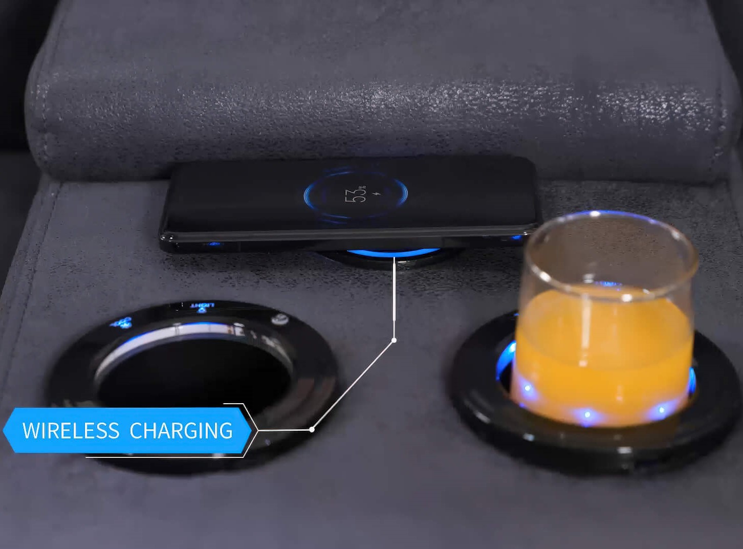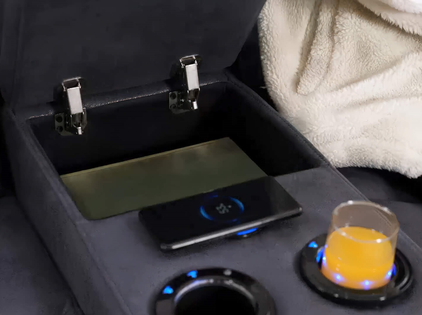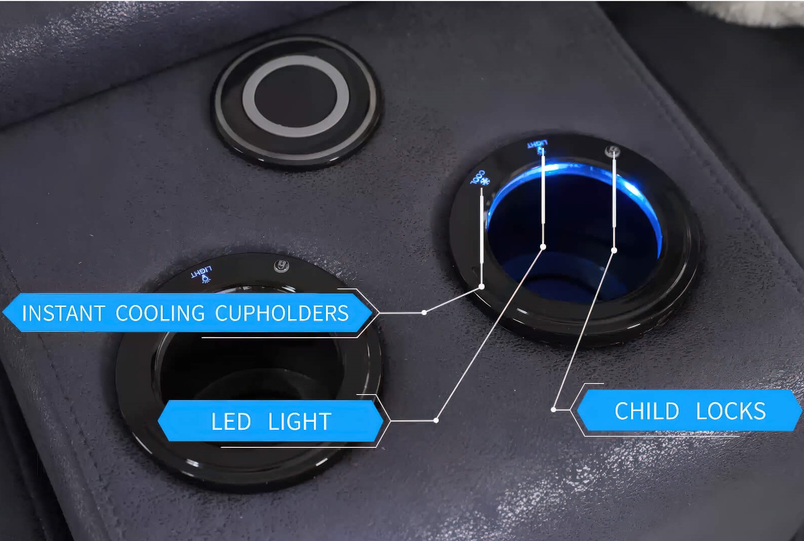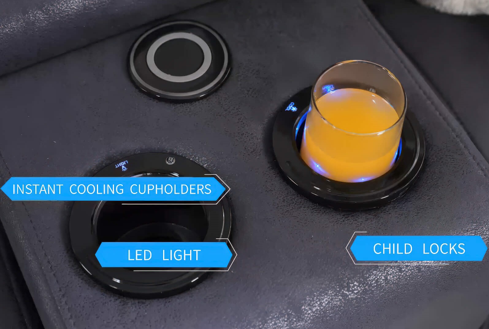 - Cooling Cup Holders - Keep your beverages perfectly chilled with built-in cooling cup holders, adding a touch of innovation and convenience to your movie or game nights.