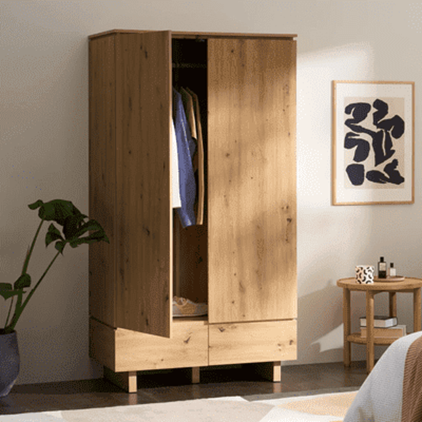 Tipton Artisan Oak Effect 2 Door 2 Drawer Double Wardrobe