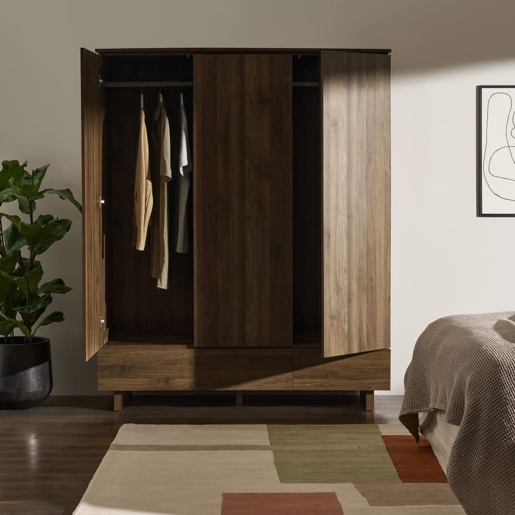 Tipton Triple Wardrobe 3 Door 3 Drawer Walnut Effect