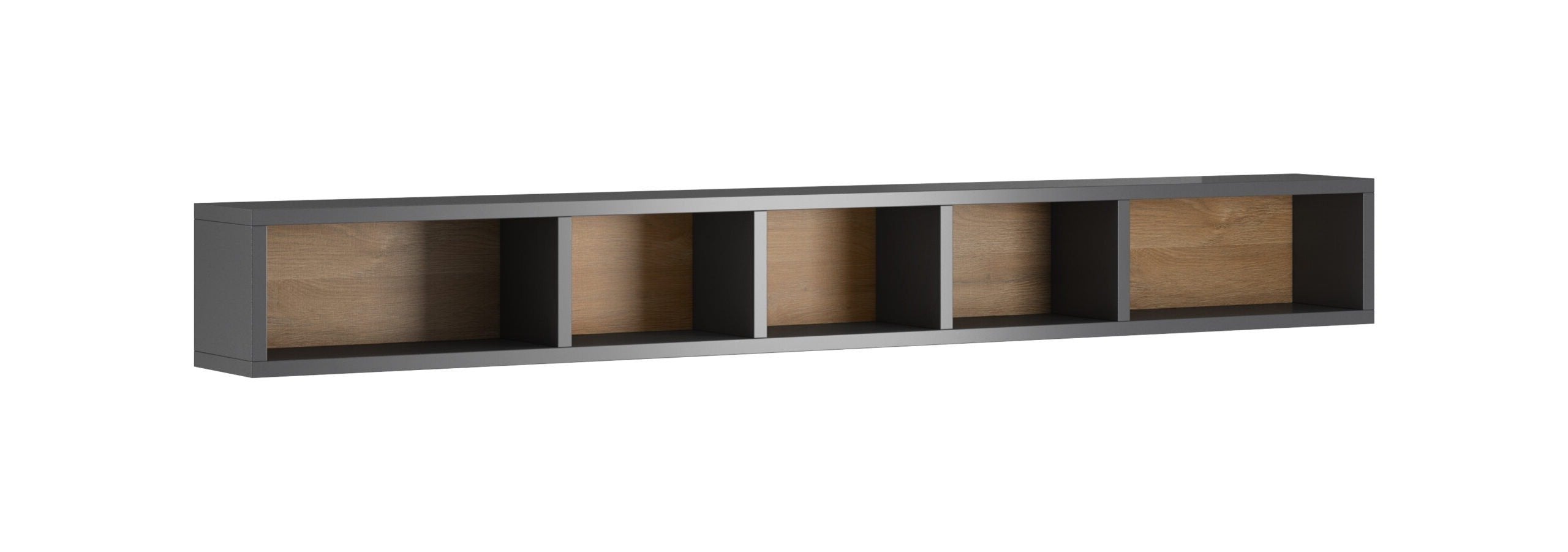5 open rectangular compartments of this wall shelf let you display essentials or treasures. In white gloss or grey matte/oak, creatively offers extra storage.