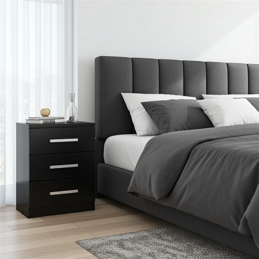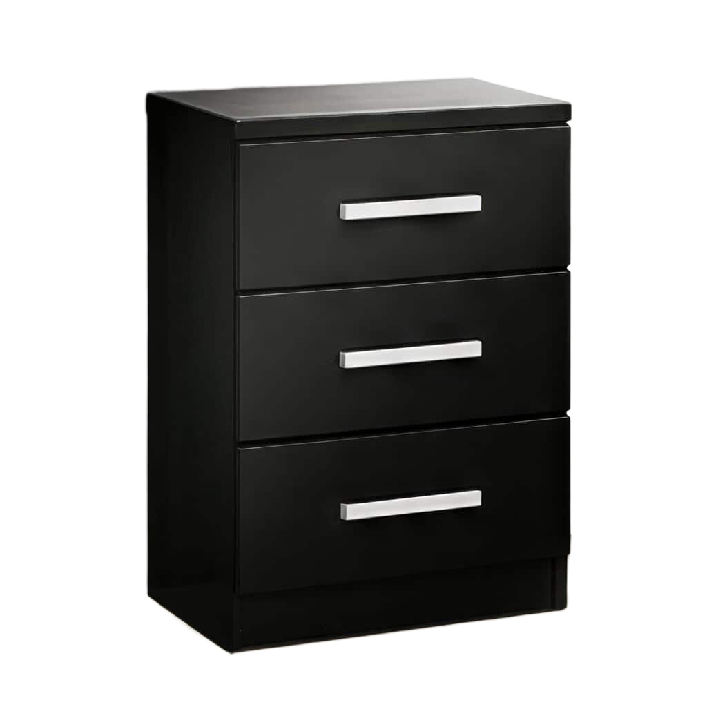 The Topline Bedside 3 Drawer – Black offers clean lines and practical storage in a compact footprint. Its high gloss black finish adds depth and drama to any bedroom, while the three drawers provide ample space for nighttime essentials, tech accessories, or personal items. Whether placed beside a bed or used as a side unit, this piece blends seamlessly into modern interiors with its understated design and functional appeal.