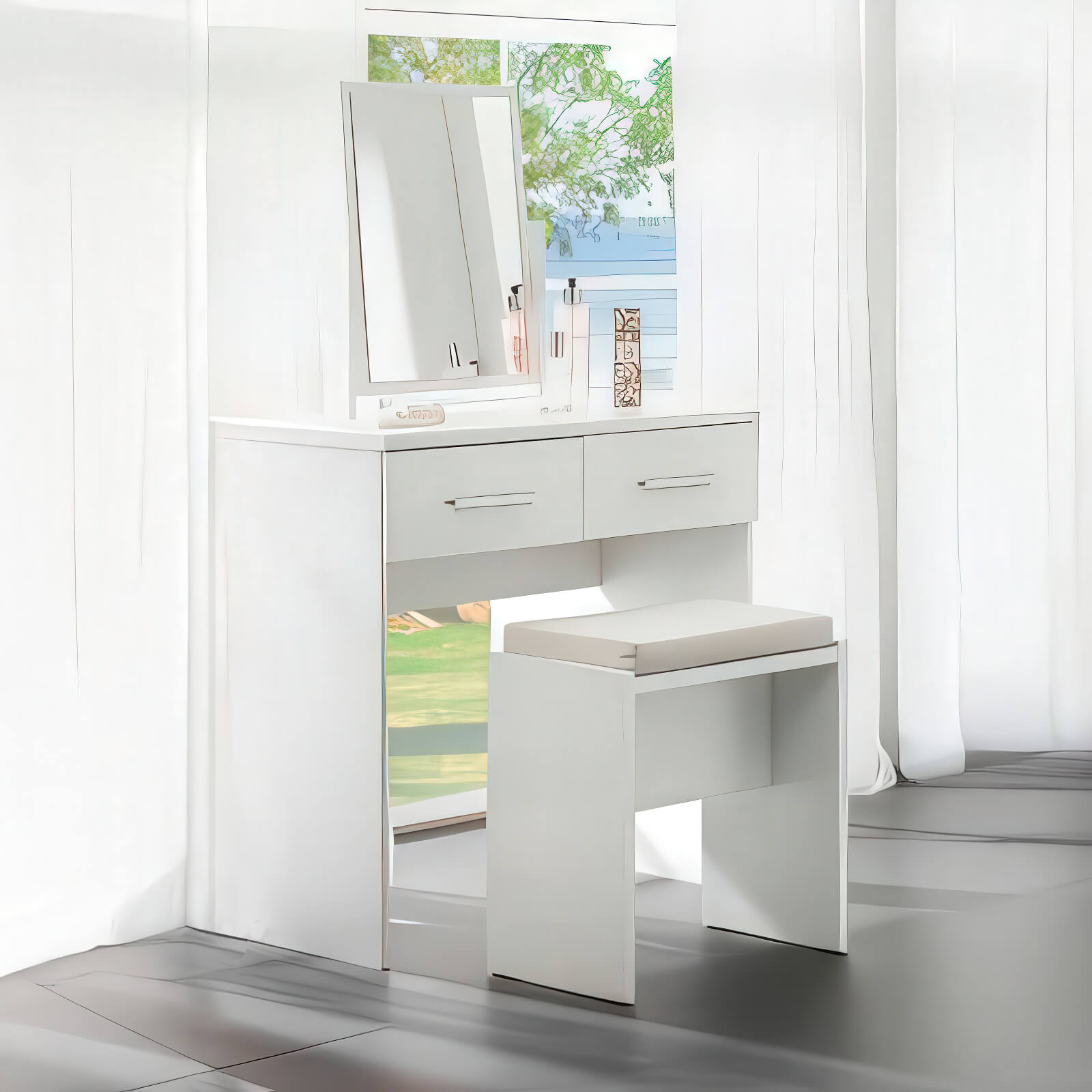 Details about Dressing Table with Mirror & Stool White