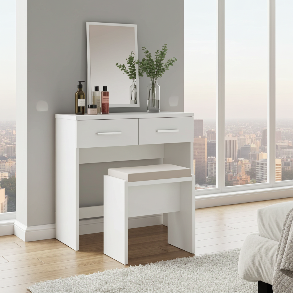 Topline Dressing Table – White Finish | Mirror & Stool Included for Modern Bedrooms