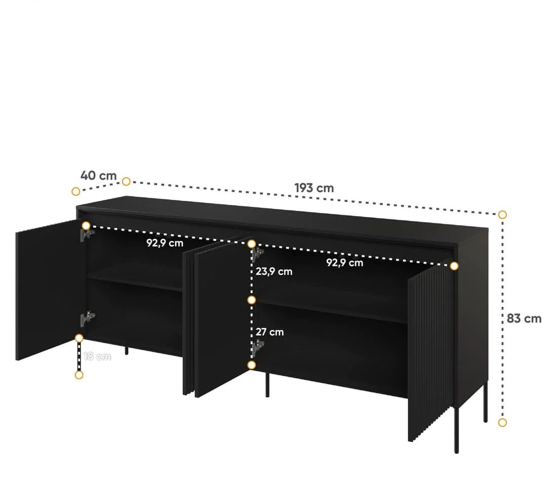 Details about Trend TR-04 Sideboard Cabinet Black Matt 193cm