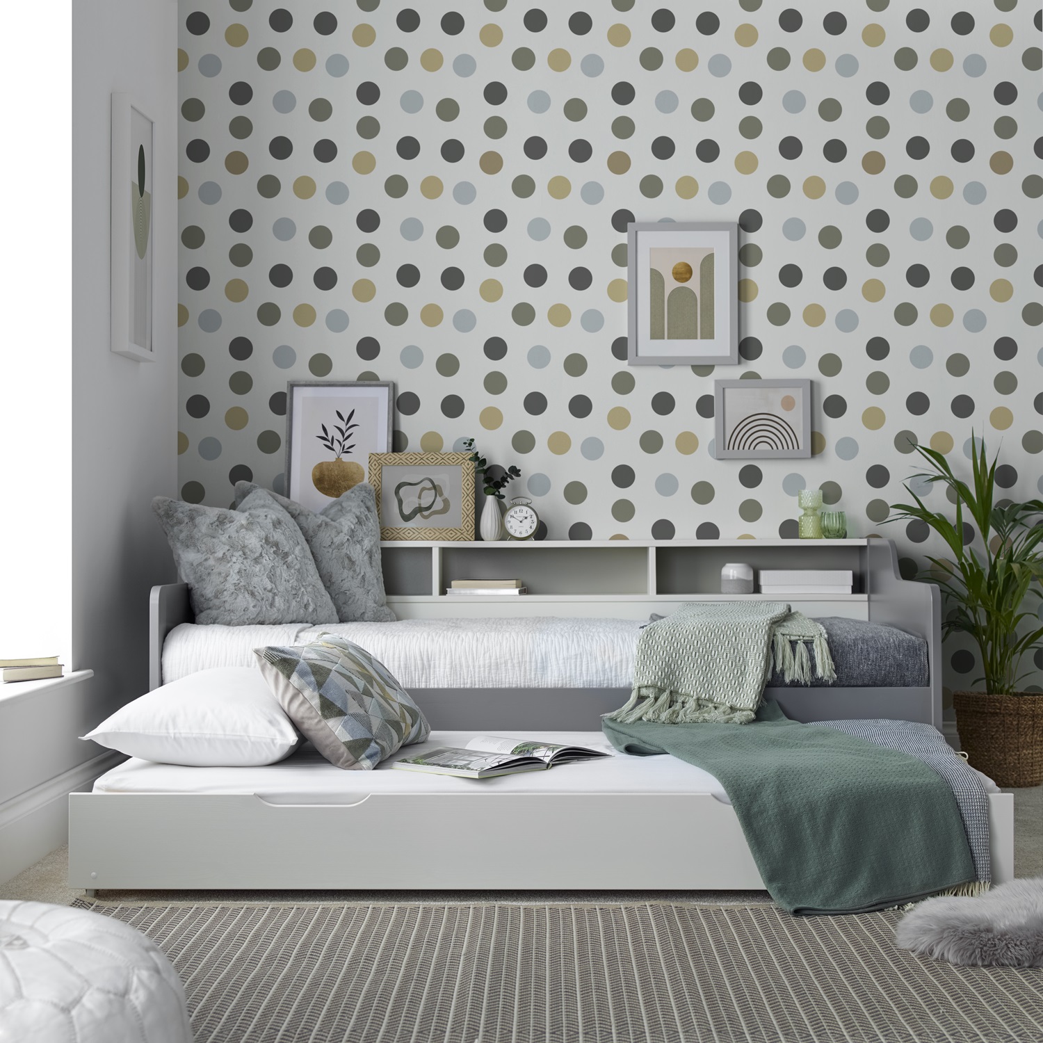 Add smart functionality and timeless style to your guest room with the Tyler Grey and White Guest Bed – Single. Crafted from solid pine and finished in a modern grey and white palette, this bed offers subtle contemporary flair and built-in practicality. Three integrated shelving compartments provide convenient storage for books, décor, or nighttime essentials. For added flexibility, pair it with the optional Tyler Trundle (sold separately) to create an extra sleeping space.