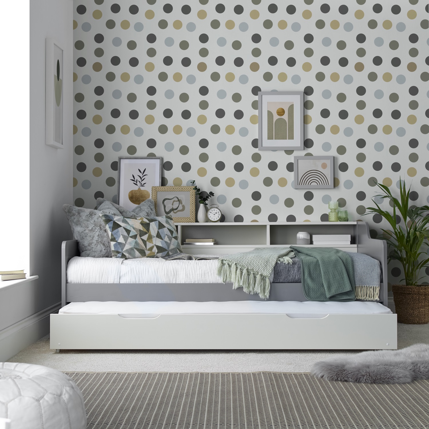 Tyler Grey and White Guest Bed – Single | Solid Pine Frame with Shelves & Optional Trundle