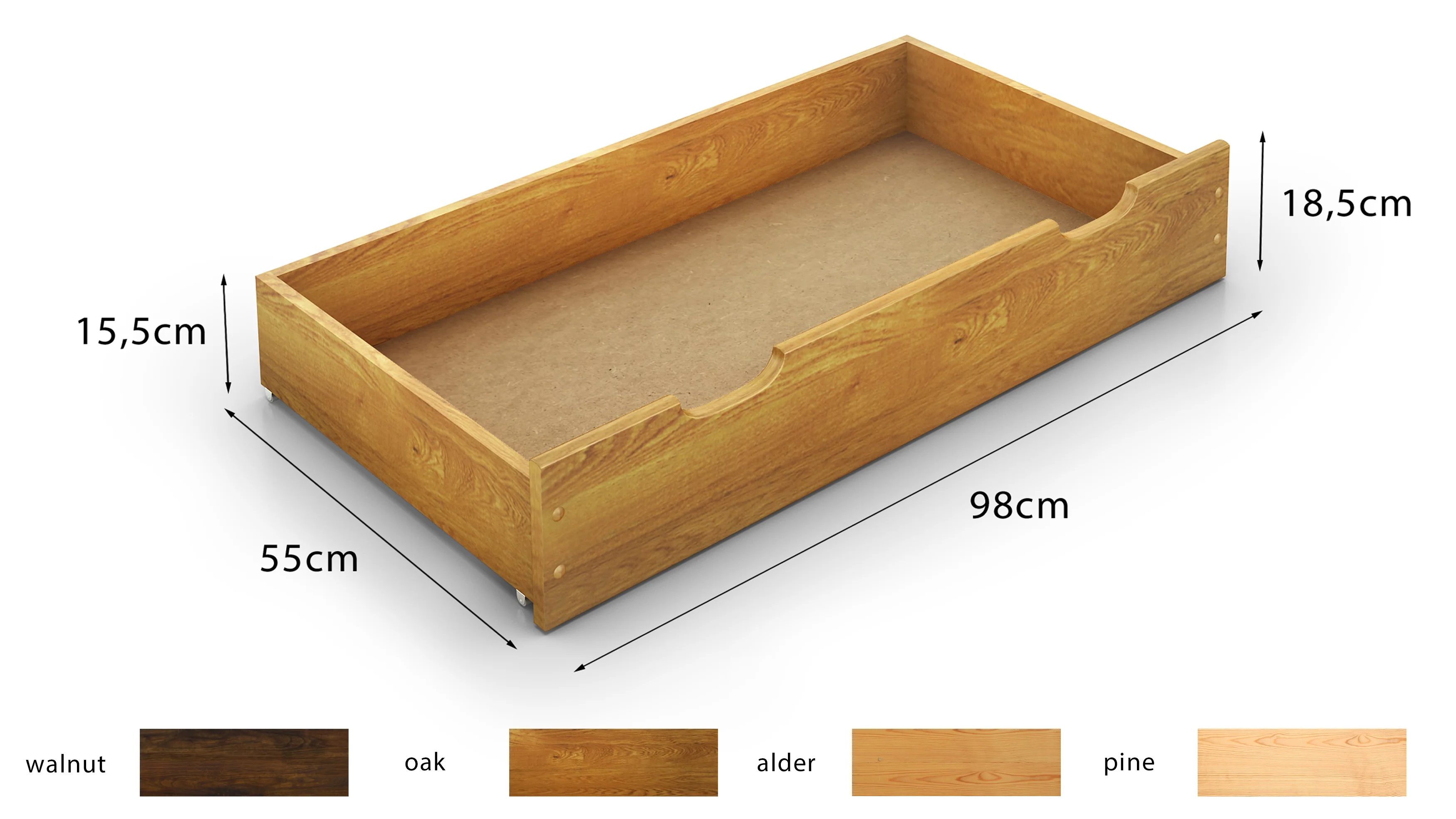 Tip: If you have a bedside cabinet next to the bed, we recommend choosing an underbed drawer of 150cm maximum length, for the best fit.