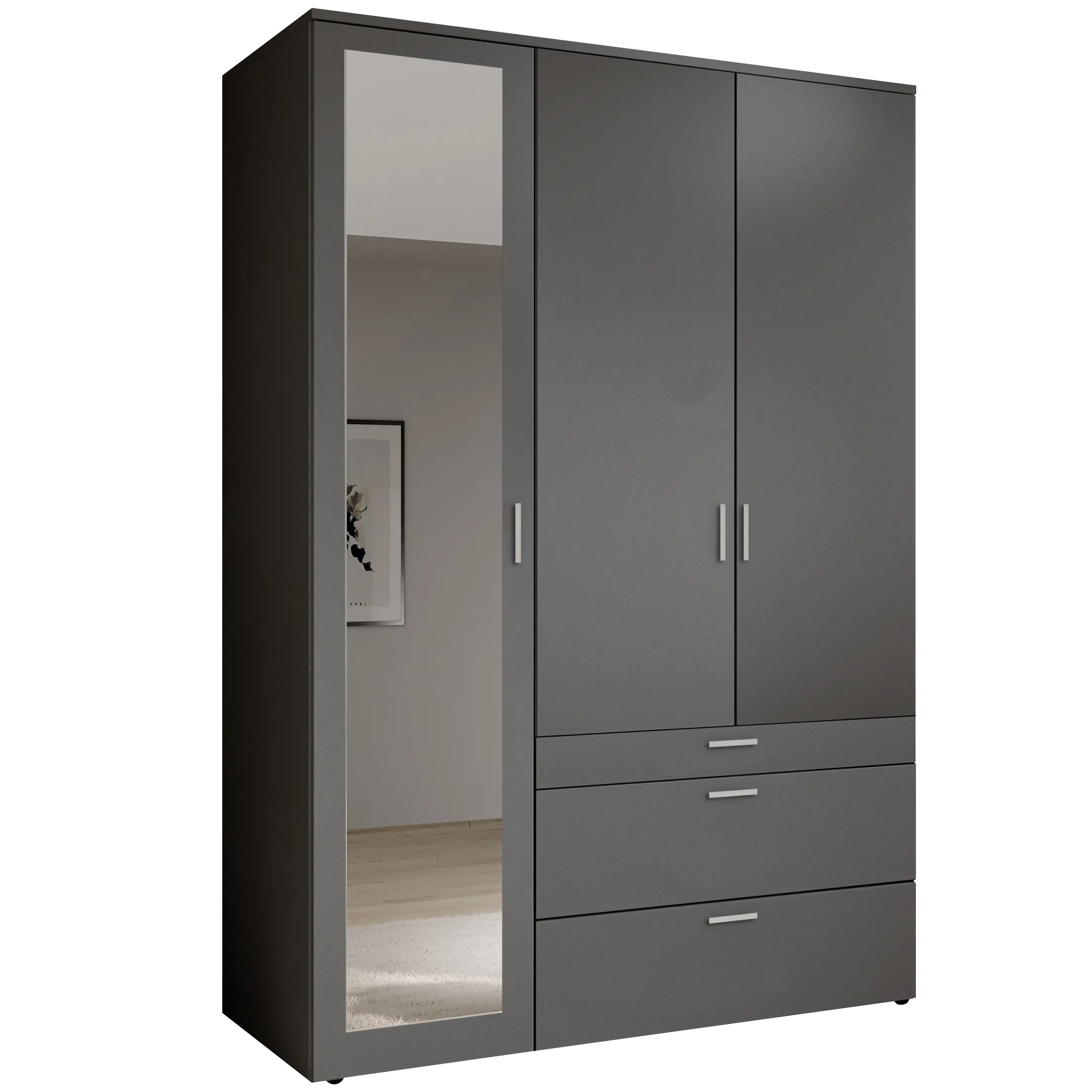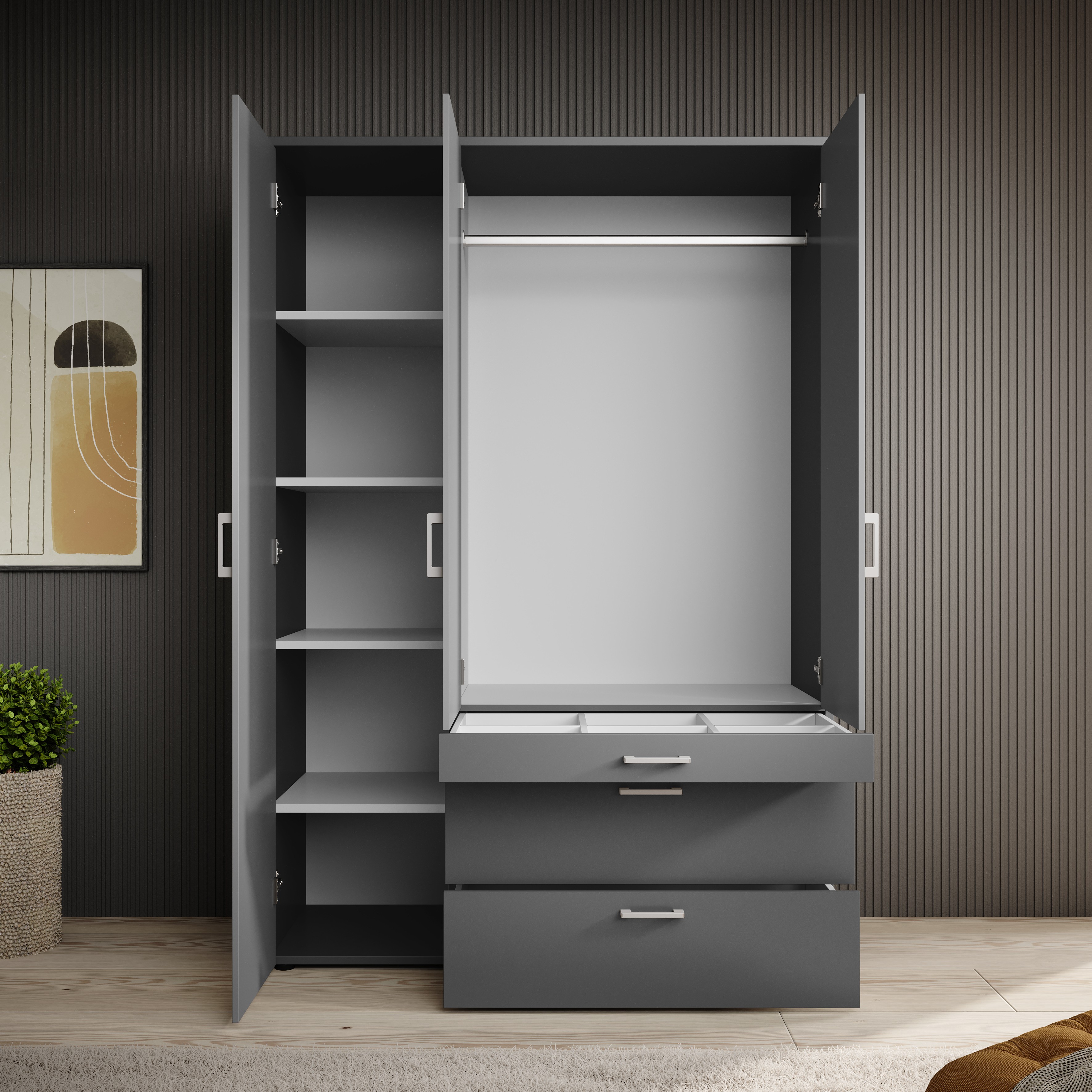 Details about 3 Hinged Door Wardrobe Graphite