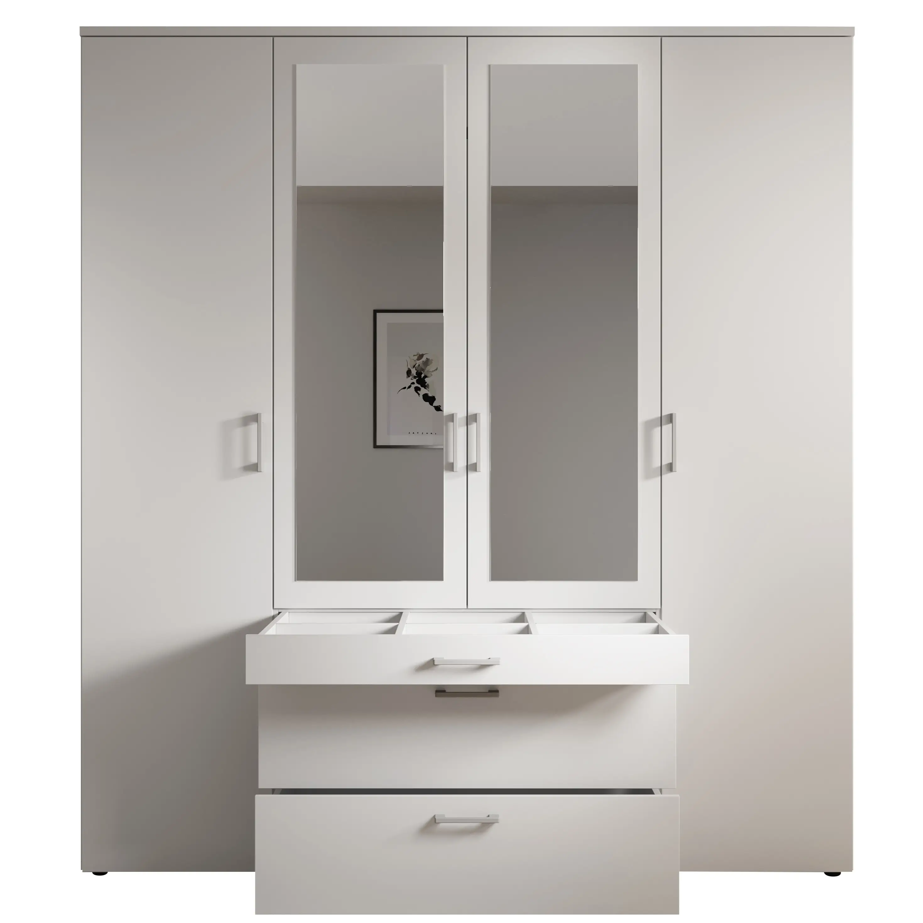 Vesala Wardrobe – White Matt Finish with Mirrored Doors (180 cm)