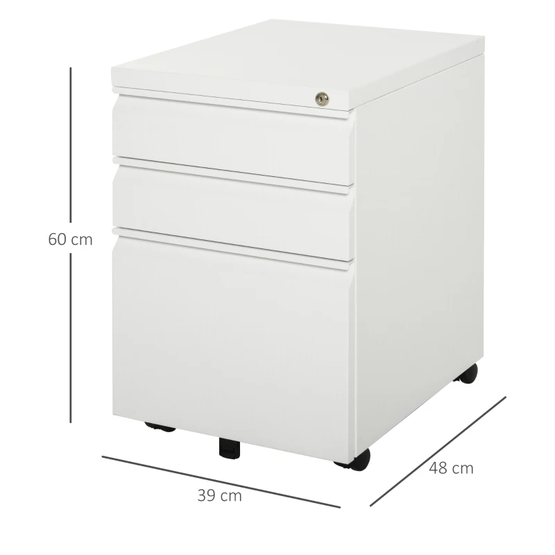 Keep messy paperwork at bay and go for this filing cabinet from Vinsetto. A design which is formed of two small drawers and a large, which gives lots of room for organising: the bottom drawer features hanging rails for A4, letter, legal files, with a stationery tray in the top drawer for pens and pencils. Five wheels keep it balanced, even with drawers open, and makes it easy to move around - even when full. Now there's no excuse for a cluttered working space in your office or home study area.