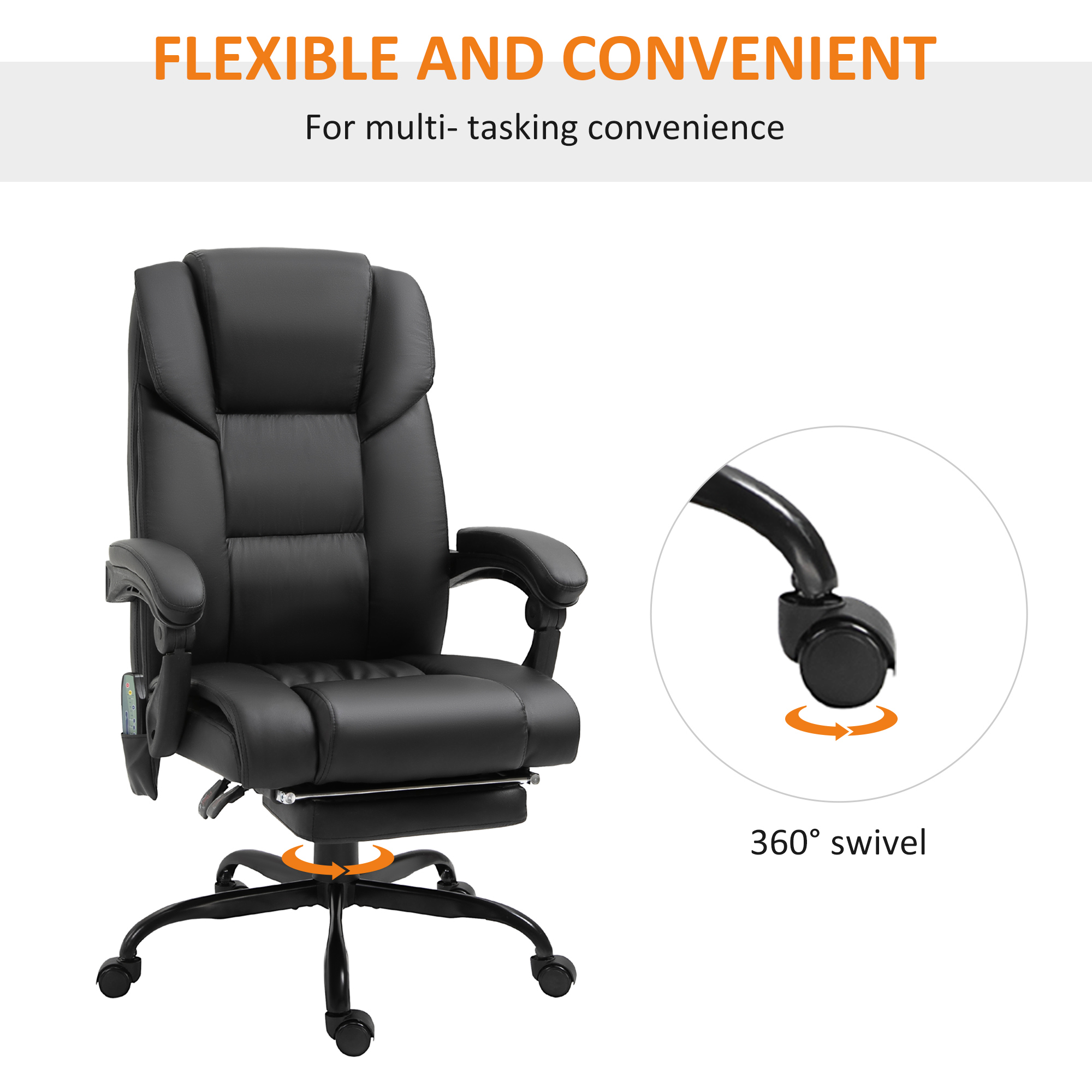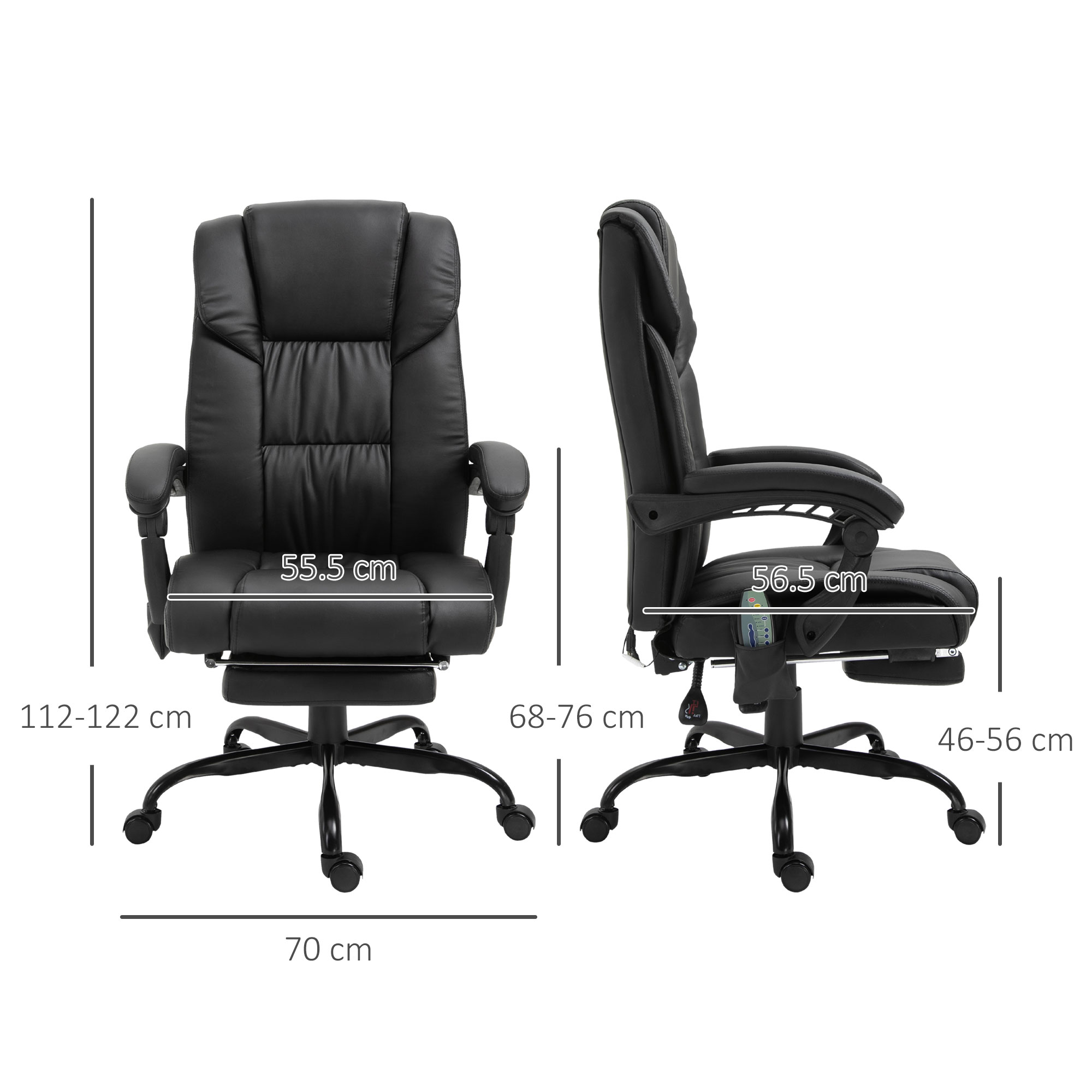 Give yourself a professional-feeling massage in your own home with this chair from Vinsetto. An executive design for style in your home office, it has six different massage points: two on the shoulders, two in the lower back and two on the thigh area. Height adjustable between 112cm and 122cm via the lever below the chair. 130В° reclining back pairs with the manual footrest to relax whenever. Complete with five wheels on the base.
