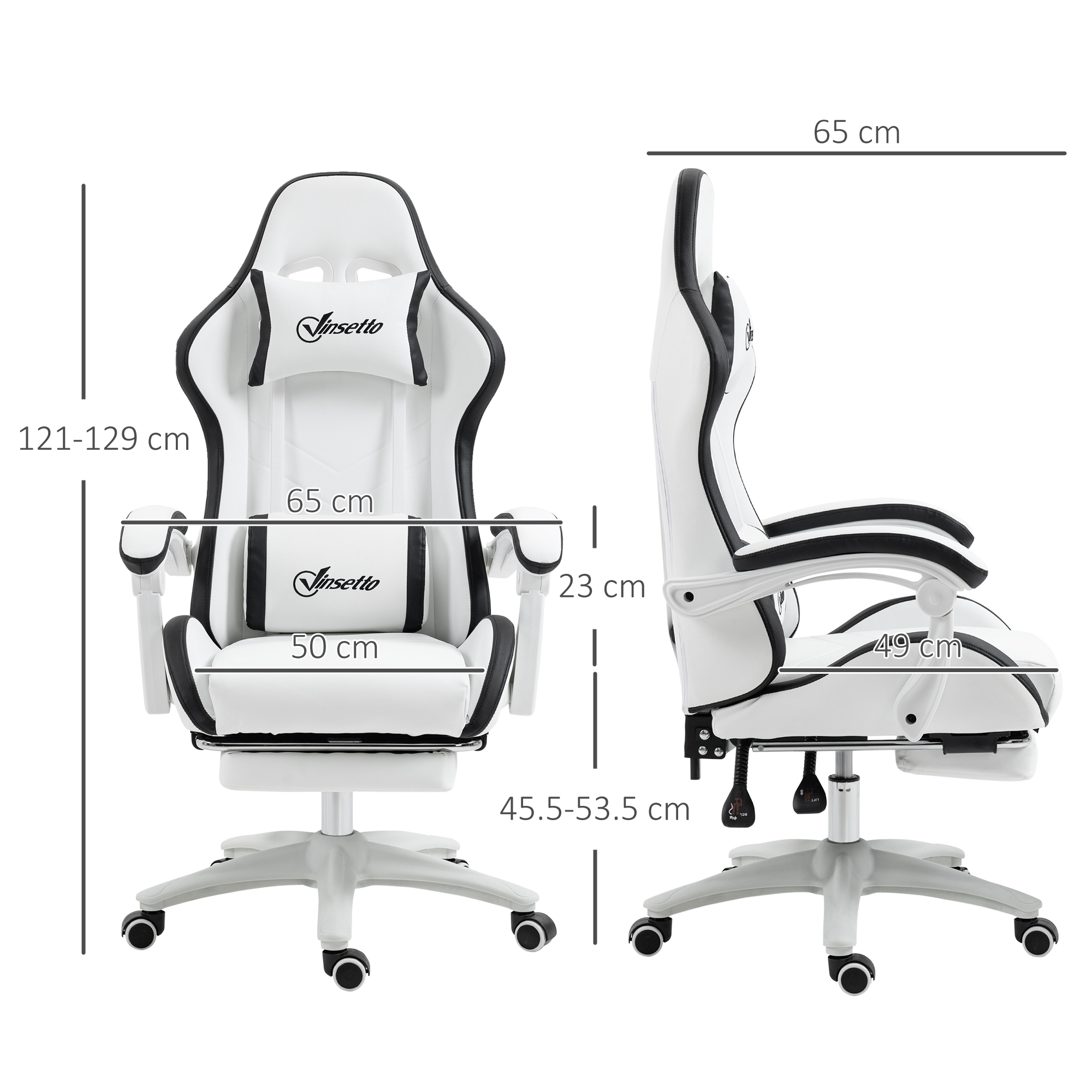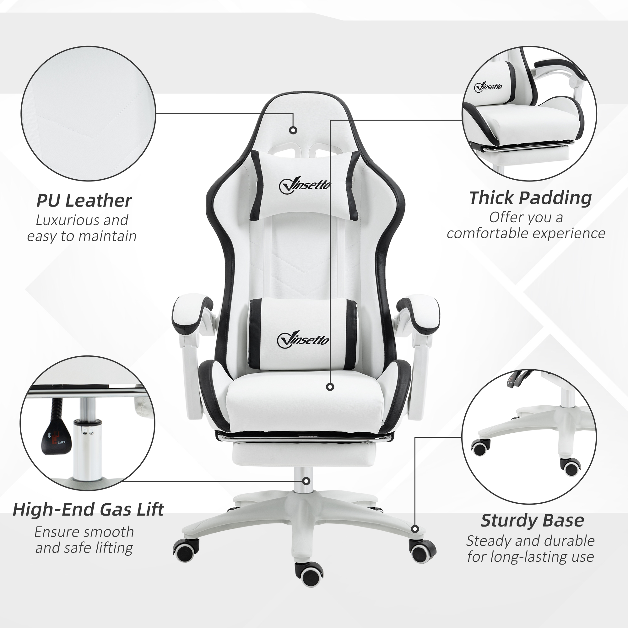 Details about Vinsetto Computer Gaming Chair, PU Leather Desk Chair with Footrest, Swivel Task Chair with 135° Reclining Back and Lumbar Support, PC Chair for Adults, White and Black