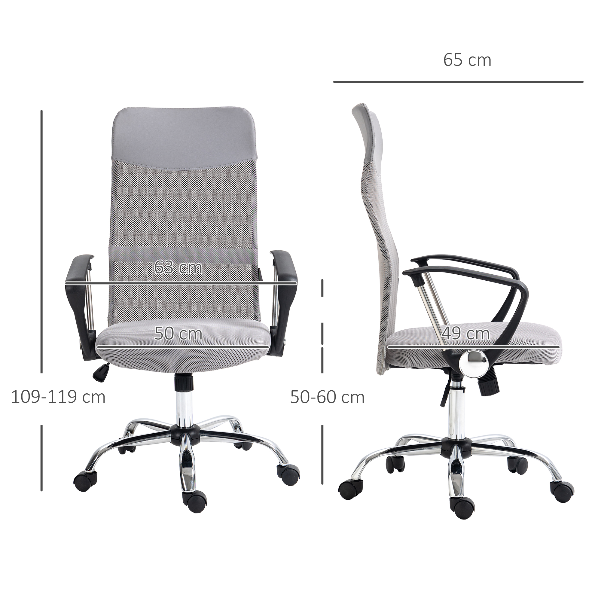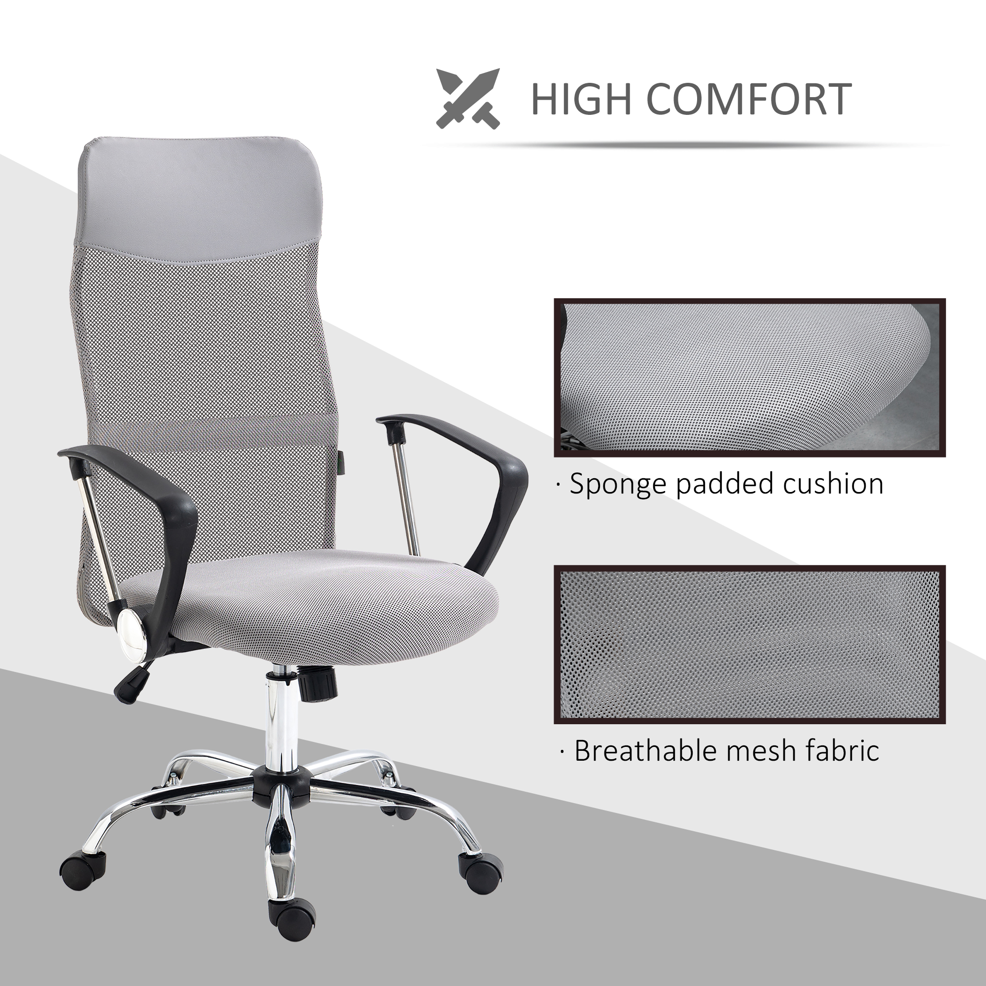 Details about Vinsetto Ergonomic Office Chair Mesh Chair with Adjustable Height Tilt Function Light Grey