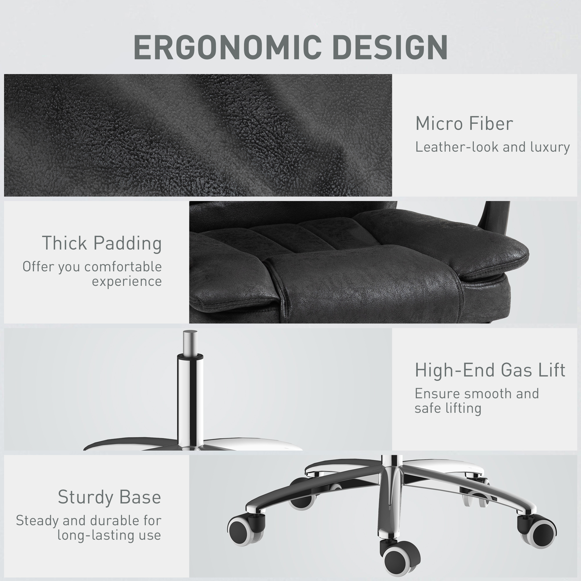 Vinsetto Home Office Chair Microfibre Desk Chair with Reclining Function Armrests Swivel Wheels Footrest Black