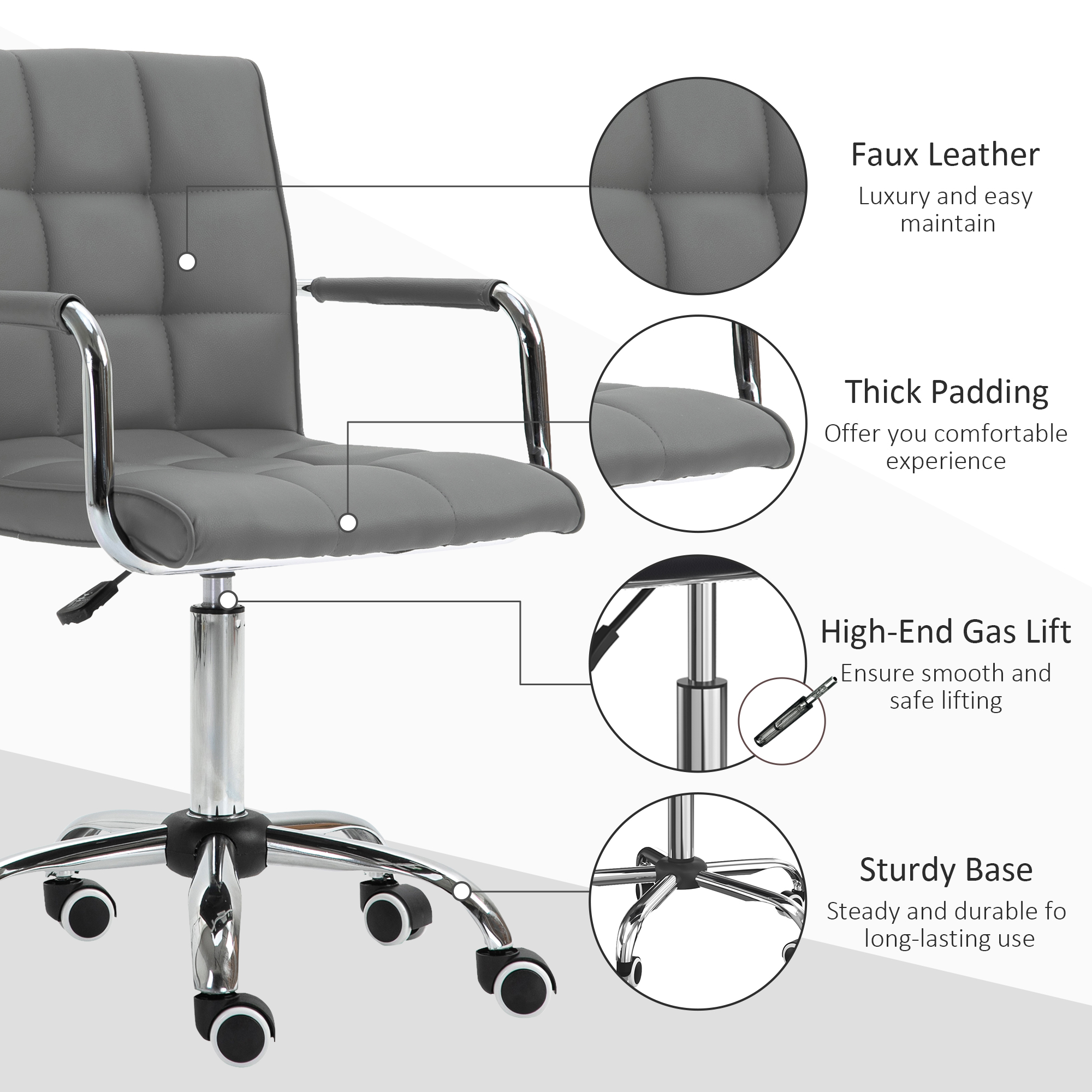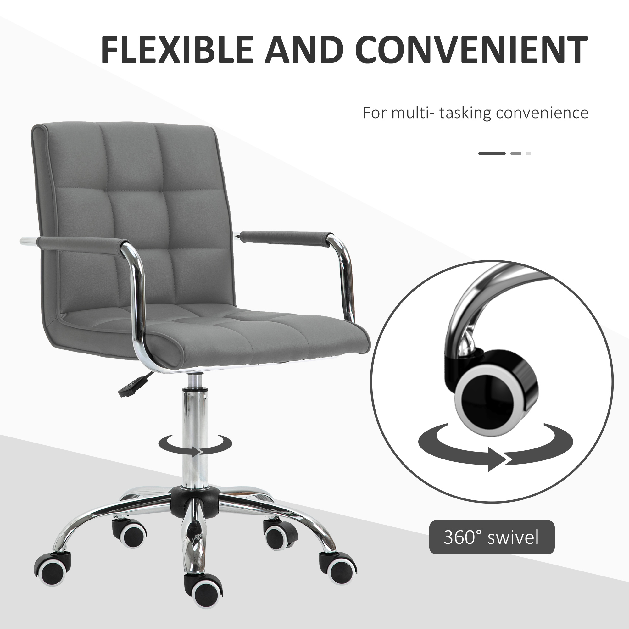 Details about Vinsetto Mid Back PU Leather Home Office Desk Chair Swivel Computer Chair with Arm, Wheels, Adjustable Height, Grey