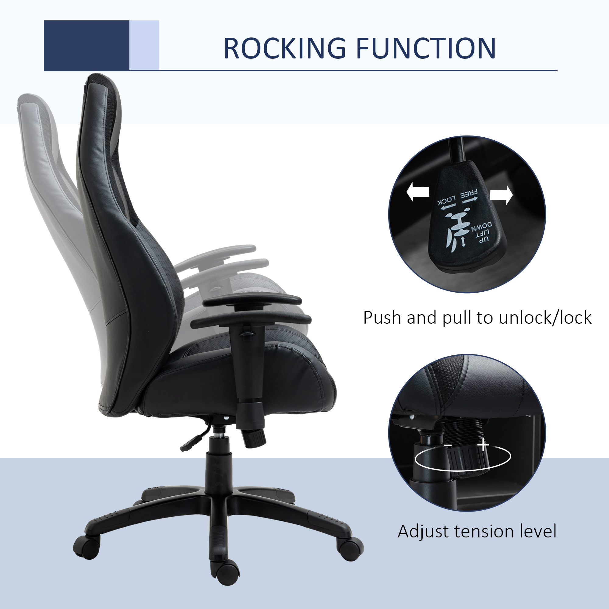 Details about Vinsetto Racing Gaming Chair, Mesh & Faux Leather Computer Chair with High Back, Swivel Wheels, Adjustable Height and Armrest, Black