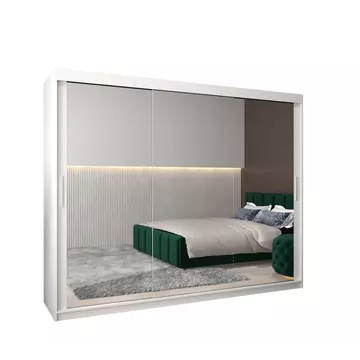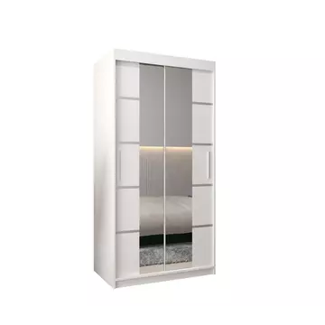 A sleek white wardrobe with drawers, shelves, and hanging space—perfect for compact bedrooms or guest rooms.