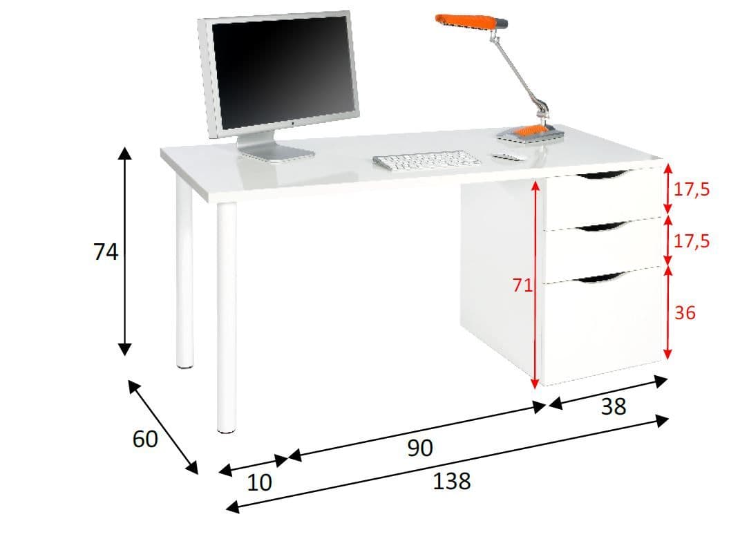 Wells White Computer Desk with 3 Drawers – Spacious & Stylish Workspace