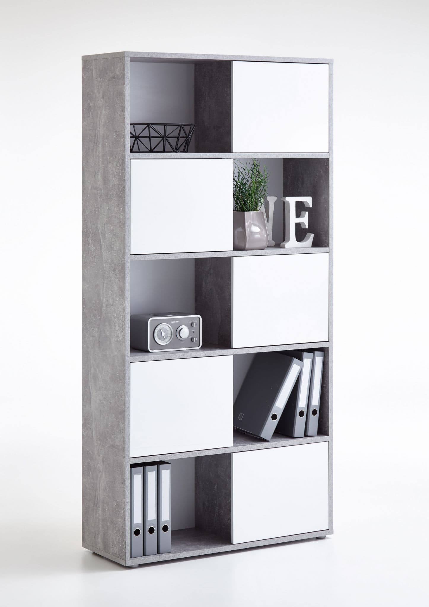 Details about Wigan Tall Home Office Bookcase Concrete Grey and White