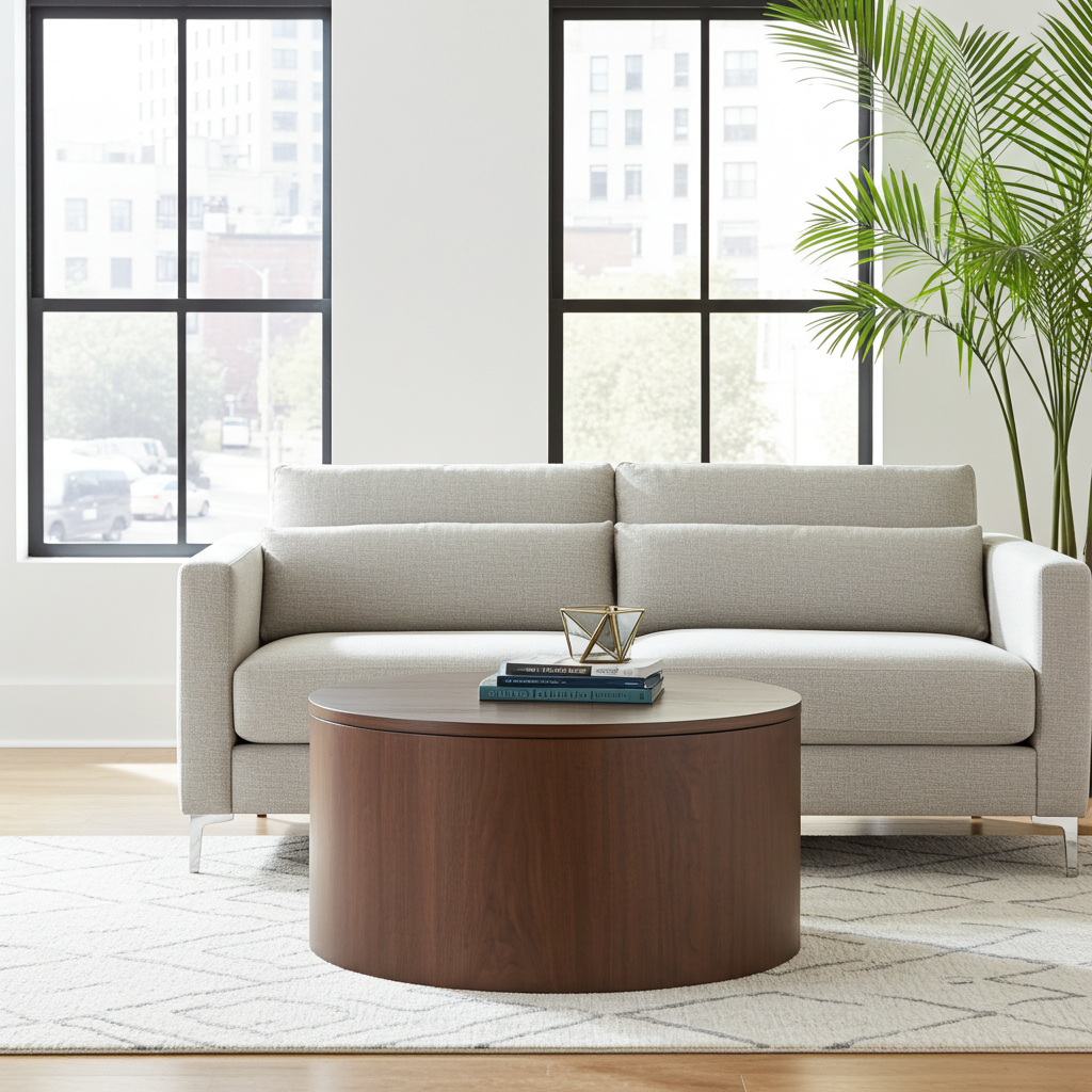 The circular shape makes it ideal for both compact and spacious living rooms. The marble‑effect top is resistant to everyday wear, while the sturdy base ensures long‑term reliability. Its height and width are perfectly balanced for use with sofas, accent chairs and living room sets.