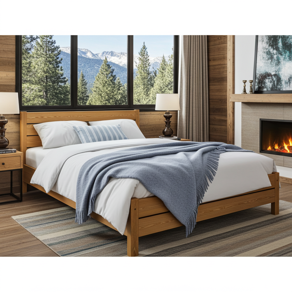 Elevate your bedroom with the Alva (F3) Wooden Bed Frame – a bold, rustic design handcrafted for comfort, strength, and timeless appeal. Made from 100% solid wood, this frame features a striking 90cm high headboard that offers excellent back support for reading or relaxing in bed.