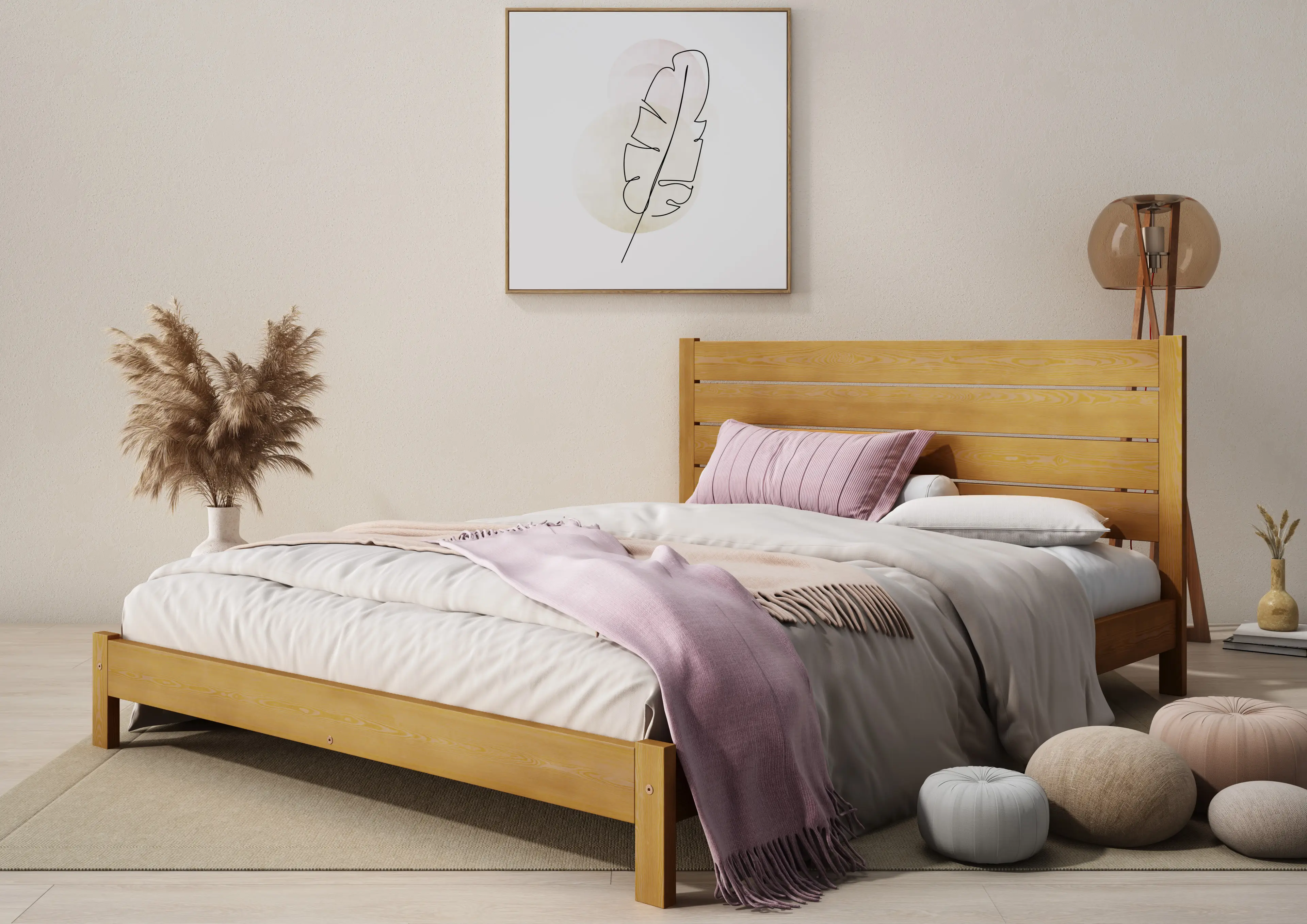 - Solid wood bed frame (flat-packed)