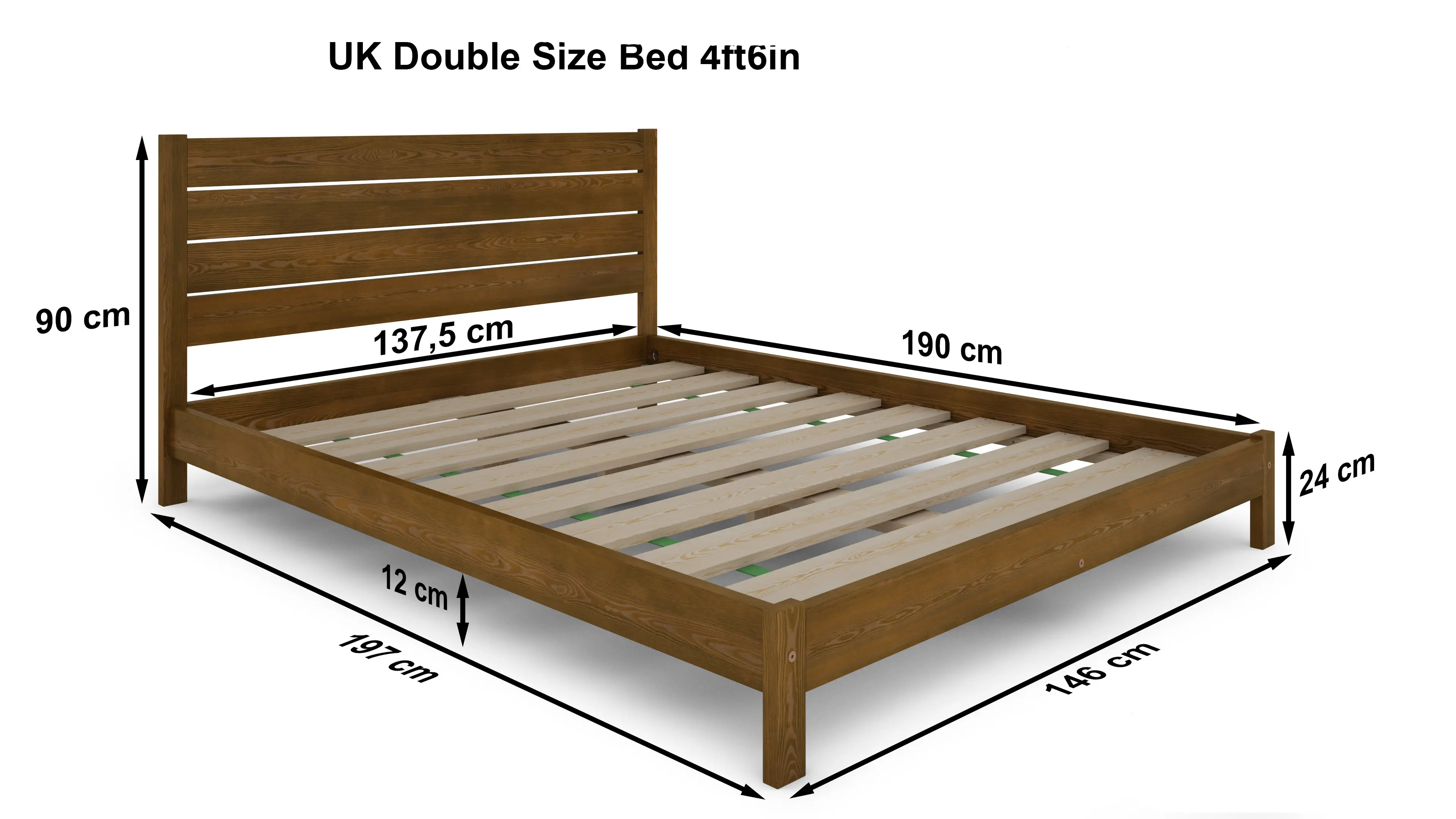 - Solid wood bed frame (flat-packed)