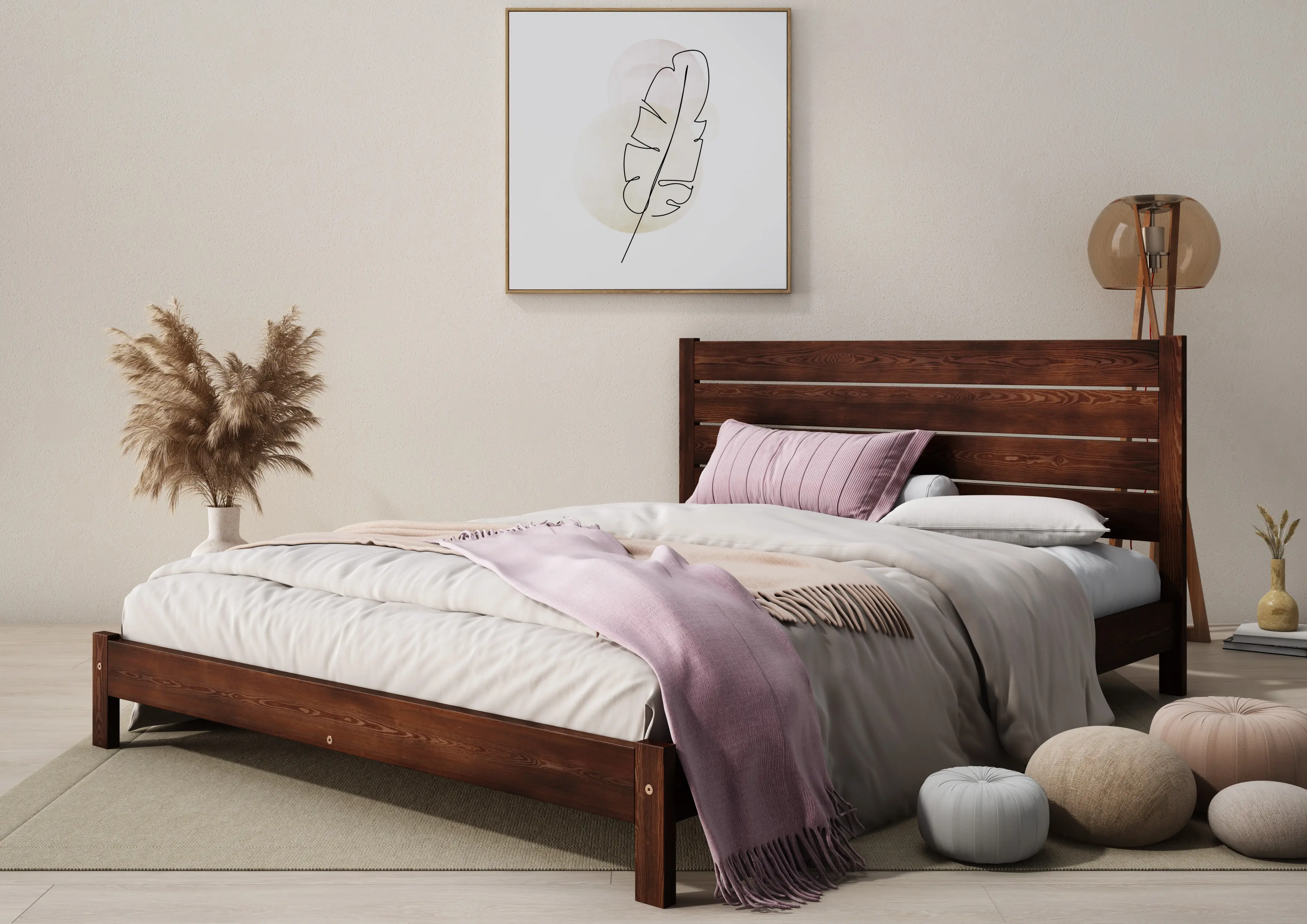 - Solid wood bed frame (flat-packed)