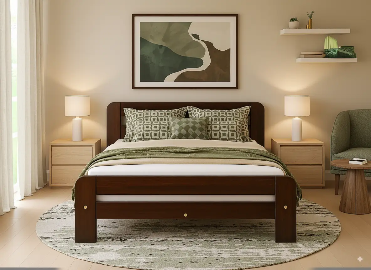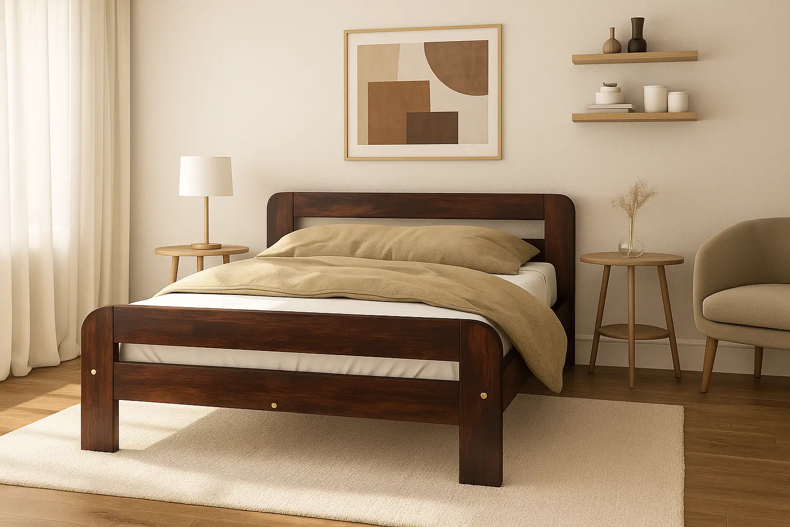 - Solid wood bed frame