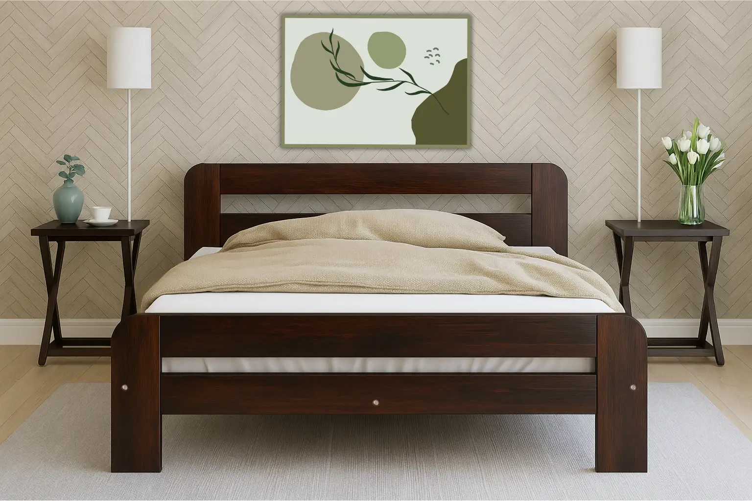 Nordic Sky (F2) Handmade Wooden Bed Frame Walnut Finish – Double in Solid Pine