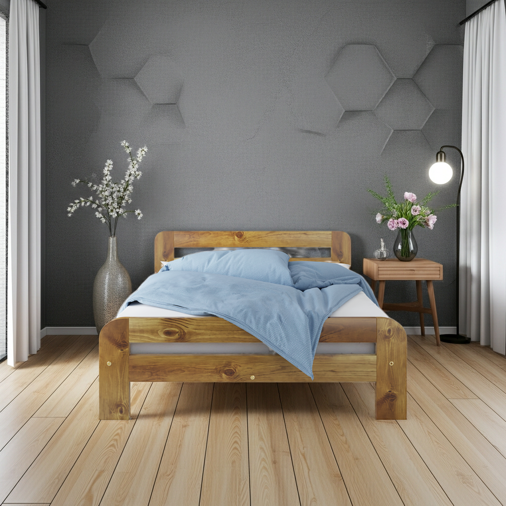 Bring Scandinavian warmth and simplicity to your bedroom with the Nordic Sky (F2) Wooden Bed Frame. Crafted from 100% solid pine, this frame features soft, rounded corners and a gently curved headboard and footboard. Compared to the Aurora (F1), the F2 offers a slightly higher footboard for added visual balance and a more enclosed feel.
